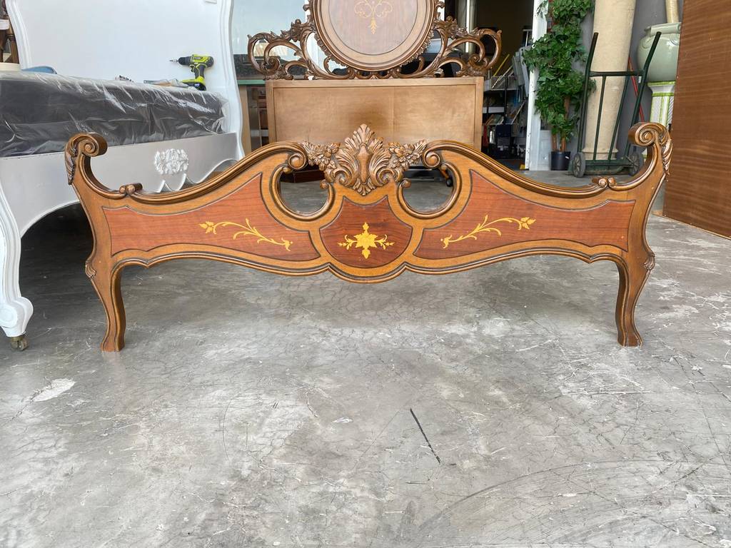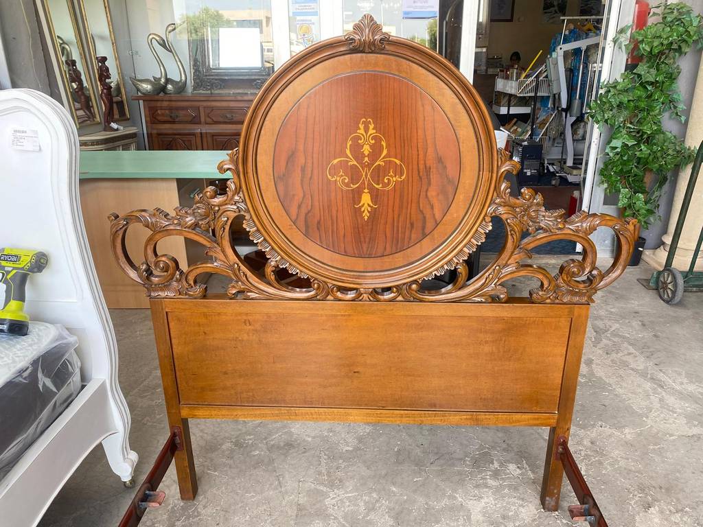 Estructura de cama fabricada en madera de buena calidad de color marrón oscuro. Se trata de una estructura de cama amplia ideal para colocar un colchón de ciento cincuenta centímetros de ancho y ciento noventa centímetros de largo. Es una cama perfecta para colocarla en un dormitorio de matrimonio. Como se puede observar en las fotografías se encuentra en buen estado.