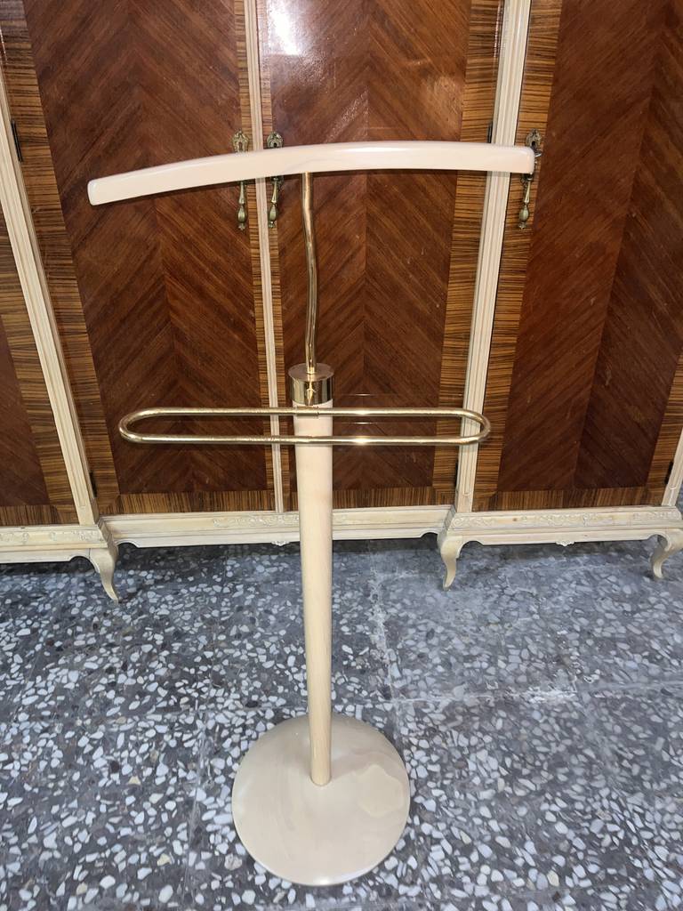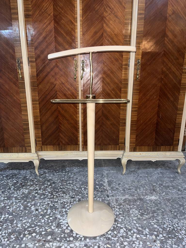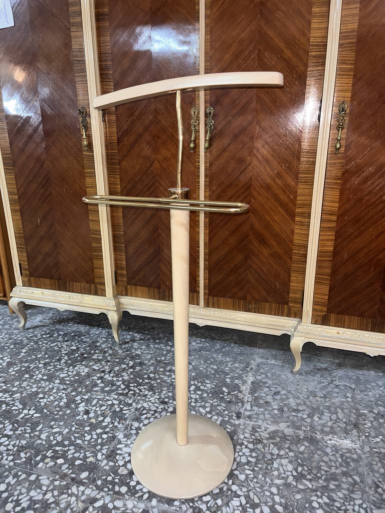 Galán de noche muy bonito y elegante que ha sido fabricado en madera de buena calidad y robusta. Se trata de un galán de noche en el cual tiene una parte para colgar una chaqueta y en el otro para estirar un pantalón. Es ideal para evitar arrugar nuestras prendas más elegantes.  Dispone de un pie circular que le aporta mucha estabilidad. Como podemos observar en las fotografías se encuentra en buenas condiciones.