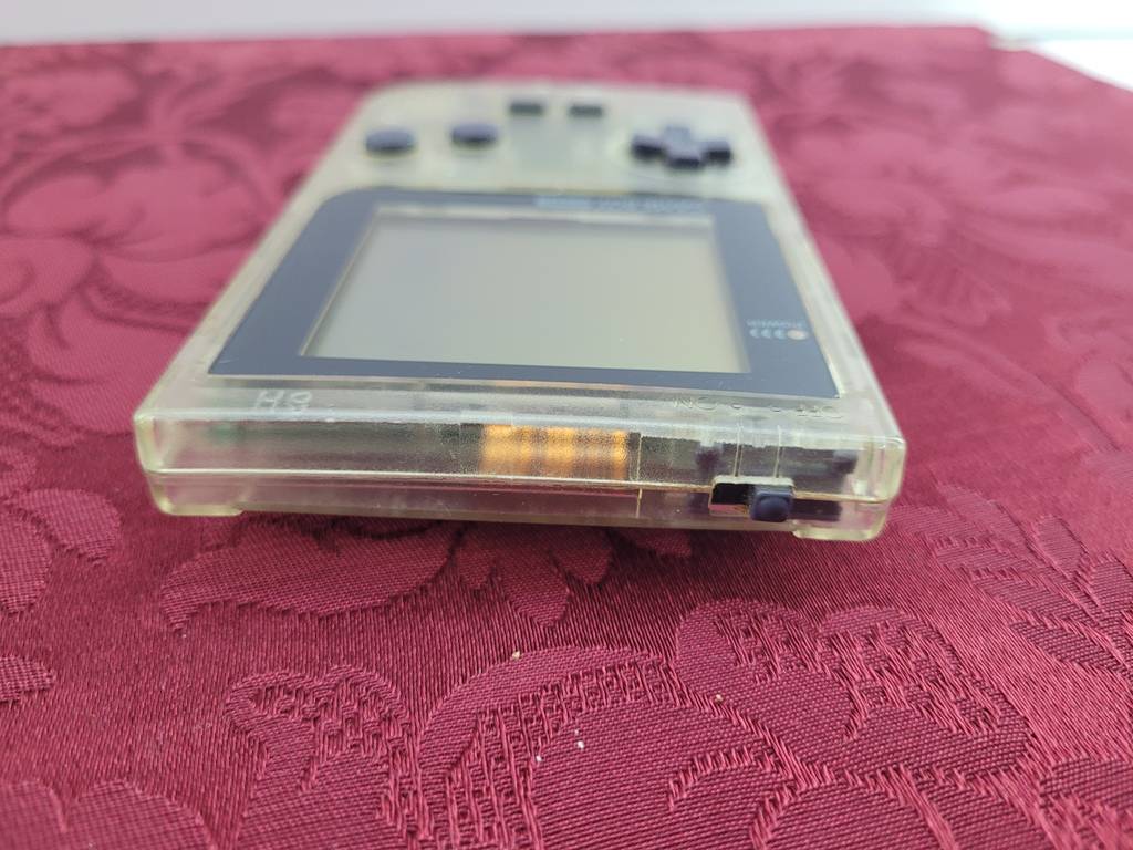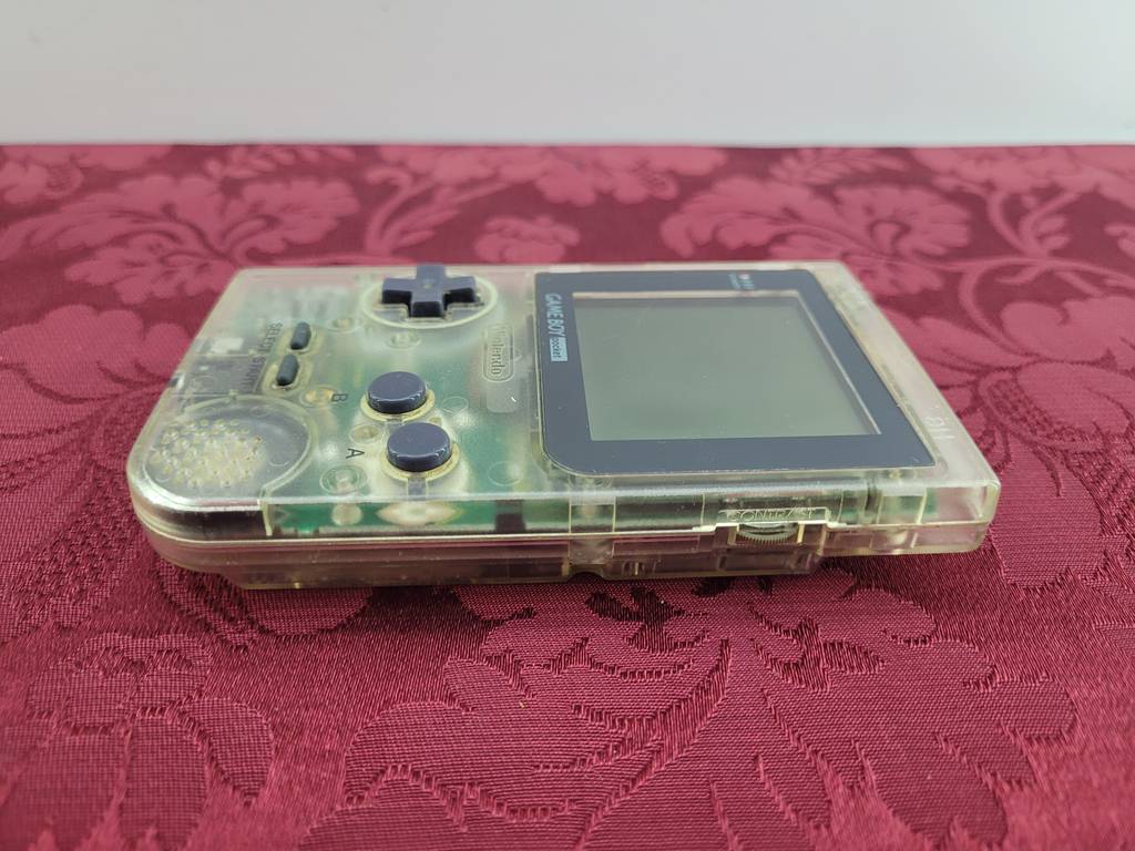 Game boy pocket de la reconocida marca de entretenimiento Nintendo. Se trata de una game boy pocket transparente que viene con una caja en la que poder guardarla y transportarla y resulta ideal para alguien al que le gusten los videojuegos. Como se puede observar en las fotografías a la game boy le falta la tapa trasera lo que no repercute en su buen funcionamiento.