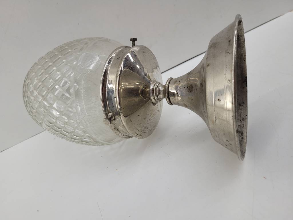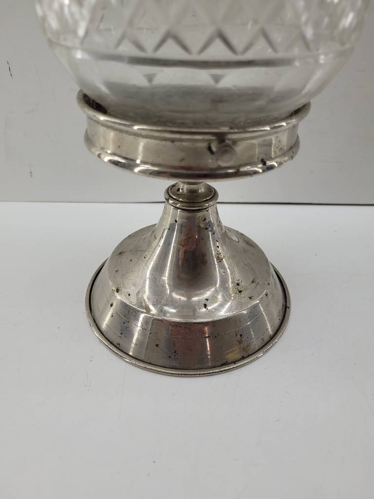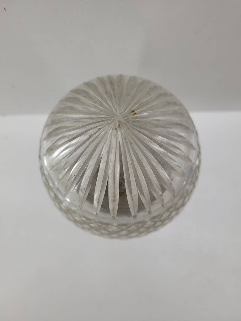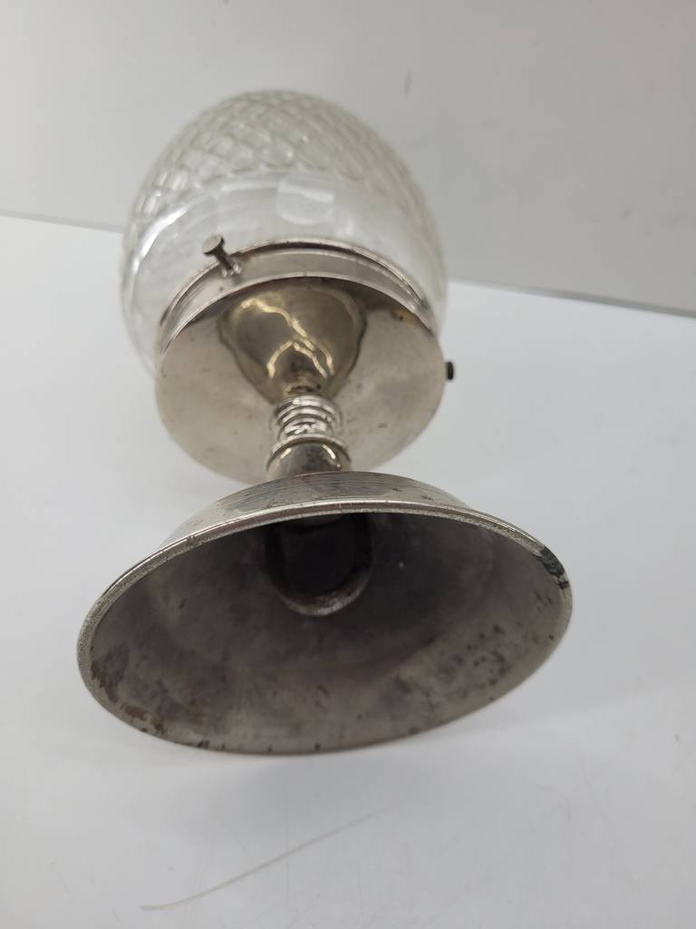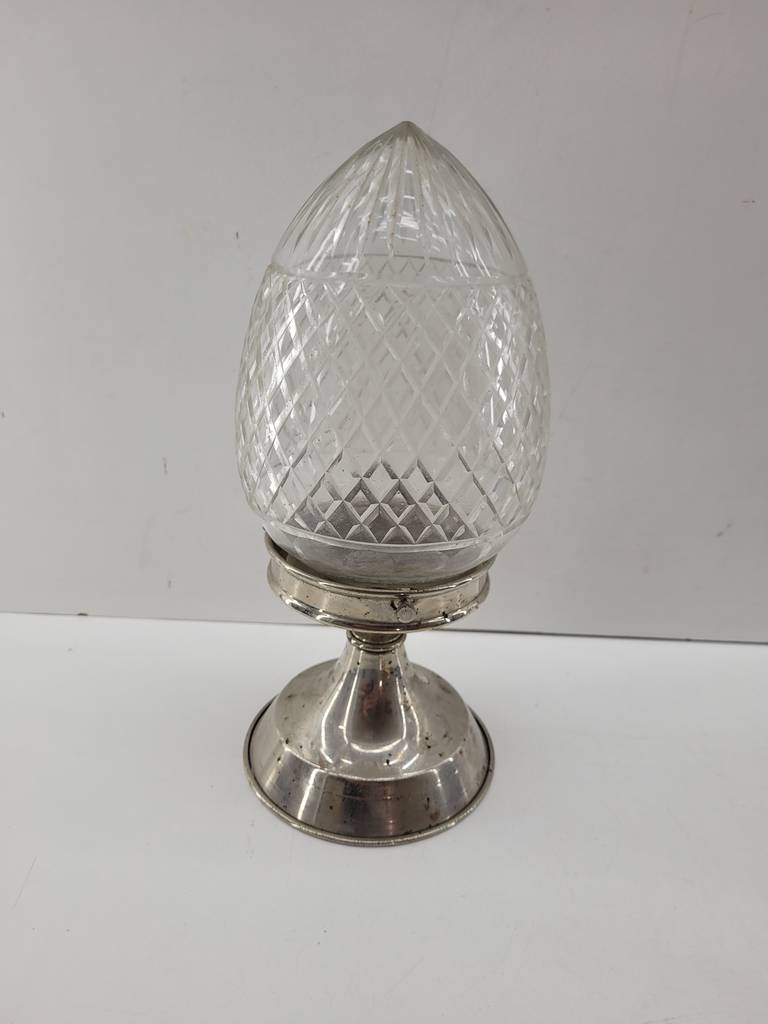 Huevo decorativo muy bonito y elegante que ha sido realizado con cristal macizo duro de buena calidad y duradero. Se asienta sobre una base plateada para exponerlo. Es ideal para decorar un recibidor o un salón comedor. Como podemos observar en las fotografías presenta desgaste que puede ser renovado y cumplir su función perfectamente.