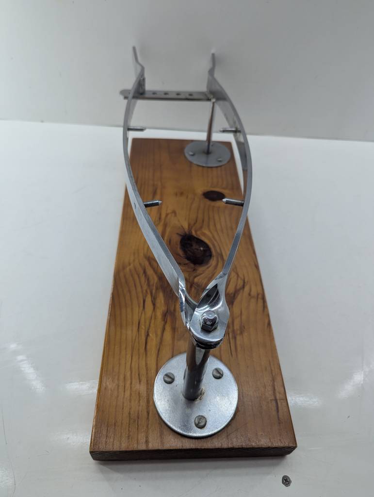 Jamonero con un diseño clásico y elegante compuesto por una base con una madera gruesa de buena calidad y robusta y dos piezas de metal para colocar nuestro jamón con firmeza. Con su diseño podemos cortar nuestro jamón cómodamente. Es ideal tanto para uso profesional como para uso doméstico. Como podemos observar en las fotografías se encuentra en buenas condiciones.