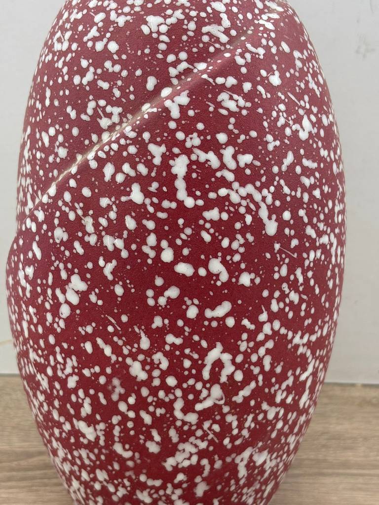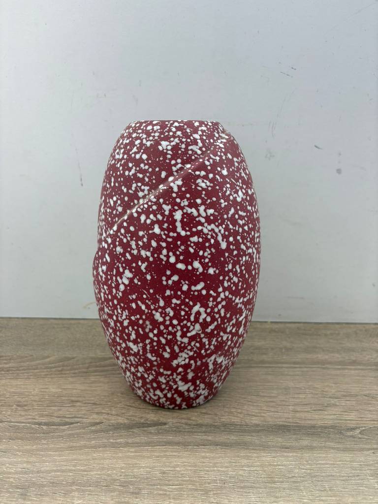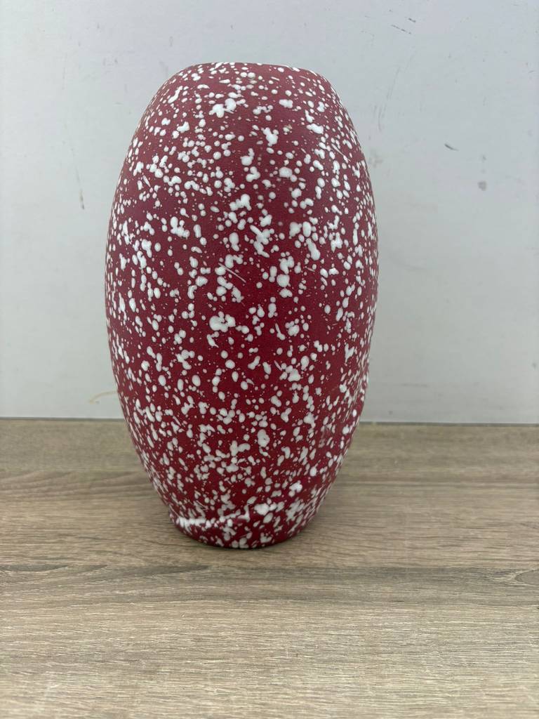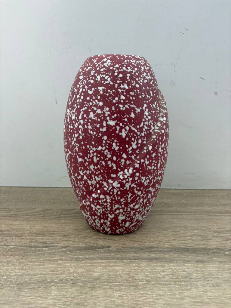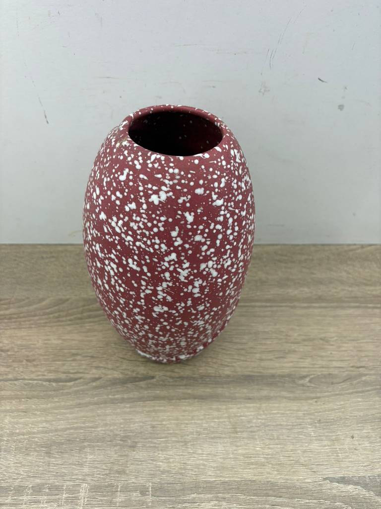 Jarrón muy bonito y original formado por múltiples manchas pequeñas blancas sobre un fondo rosa. En la parte superior dispone de una apertura de tamaño medio ideal para colocar unas bonitas flores acompañándolo. Es ideal para colocar en cualquier estancia, en especial un recibidor o un salón comedor. Como podemos observar en las fotografías se encuentra en buenas condiciones.