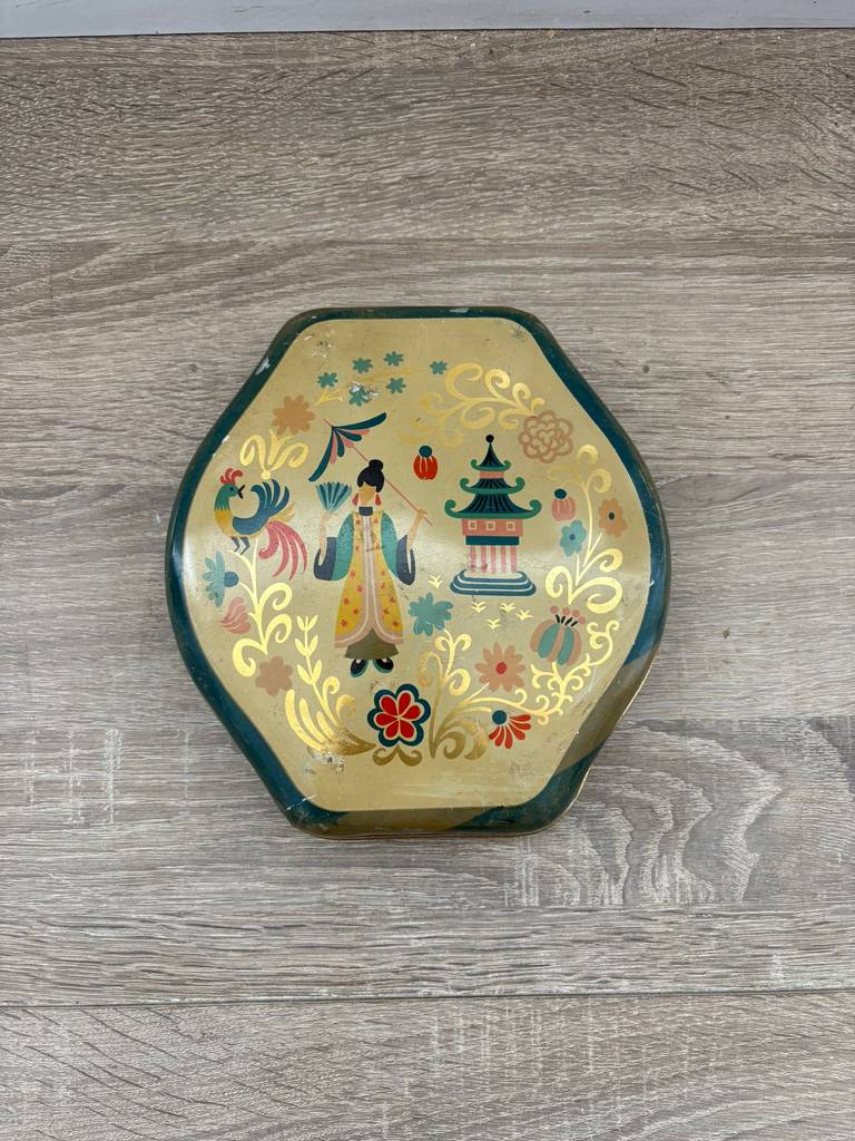 Lata de metal muy bonita y original de la marca Hard Candies con motivos orientales en la tapa frontal. Es una lata ideal para coleccionistas y amantes de este tipo de artículos. Perfecta para exhibición, colección o decoración en un salón comedor o junto con otras piezas coleccionables del mismo estilo. También nos puede servir para almacenar pequeños enseres. Como podemos observar en las fotografías presenta ligeros desperfectos.
