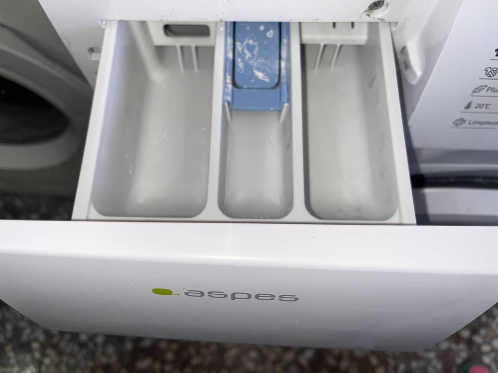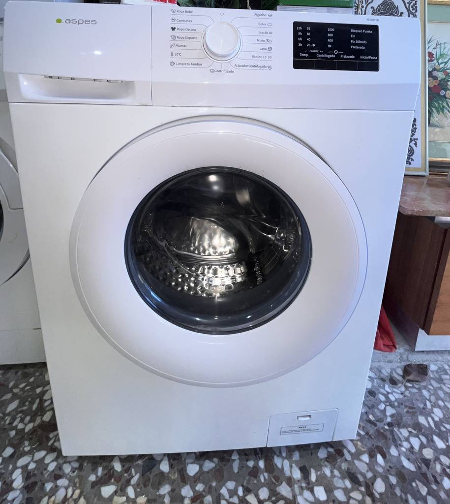 Lavadora de la reconocida marca de electrodomésticos Aspes de color blanco. Se trata de una lavadora que tiene una capacidad de lavado de hasta seis kilogramos de ropa a la vez. Es una lavadora muy útil y práctica que debe estar en todos los hogares de este país hoy en día. Como se puede observar en las fotografías se encuentra en buenas condiciones y funciona correctamente.