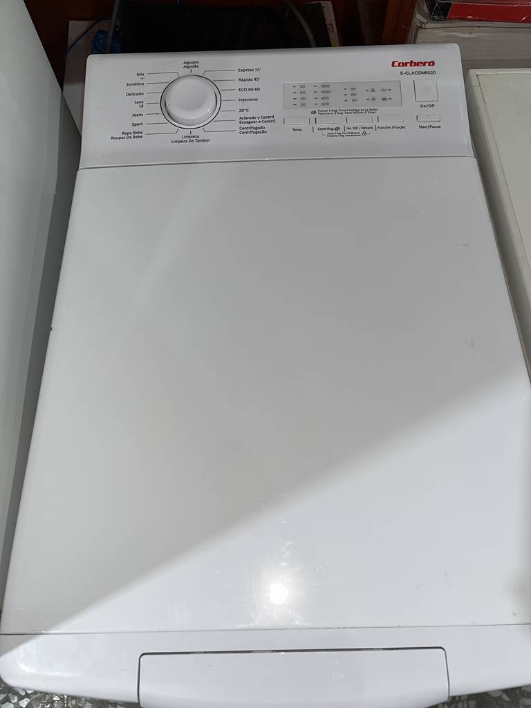 Lavadora de carga superior de la marca Corberó de color blanco. Se trata de una lavadora que tiene una capacidad de lavado de hasta seis coma cinco kilogramos de ropa a la vez y se carga por la parte superior. Es una lavadora de gran tamaño que resulta ideal para tenerla en la galería de cualquier hogar. Como se puede observar en las fotografías se encuentra en buenas condiciones.