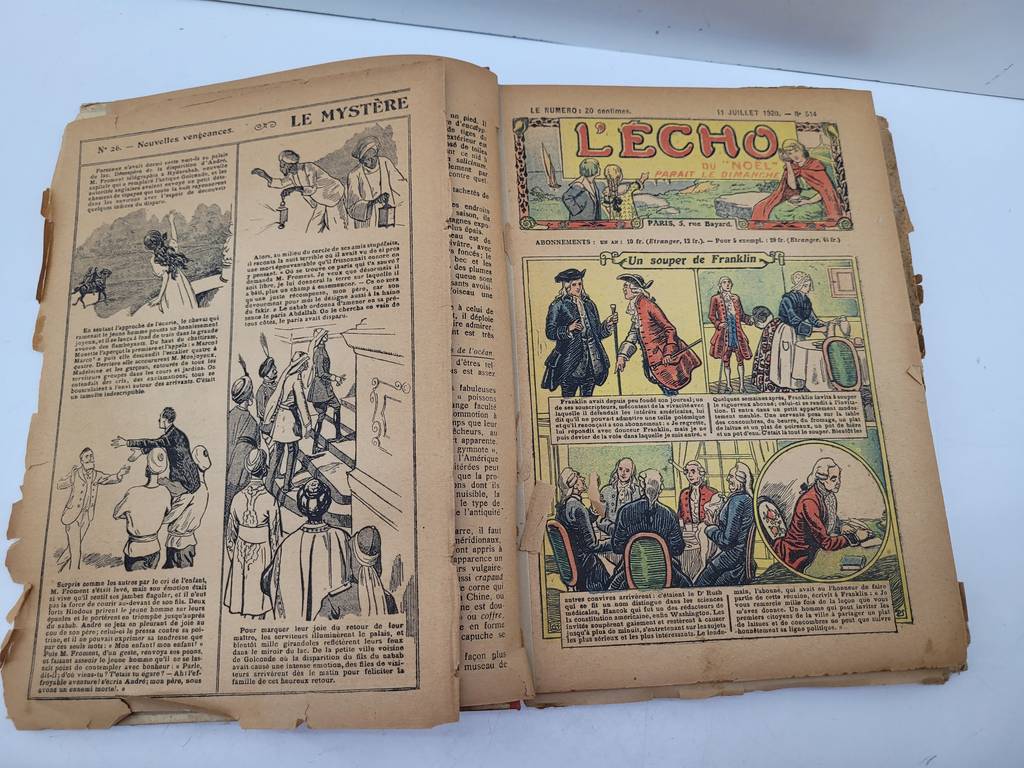 Revista o libro L’echo du “Noel” del año 1920. Se trata de un libro ilustrado vintage que está en francés con varias páginas a color con una portada en tapa dura. Dispone de una advertencia en la contraportada en español y con una dedicatoria. Es una pieza ideal para coleccionistas o amantes de este tipo de productos vintage. Como podemos observar en las fotografías presenta desgaste.