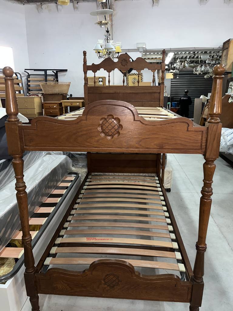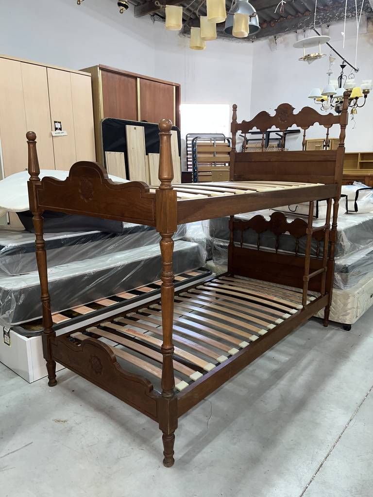 Litera de estilo clásico fabricada en madera de buena calidad de color marón oscuro. Se trata de una litera doble que cuenta con dos soportes para colocar dos colchones de 90x190cm. Es una litera perfecta para colocarla en un dormitorio infantil o juvenil de estilo clásico. Como se puede observar en las fotografías se encuentra en buenas condiciones.