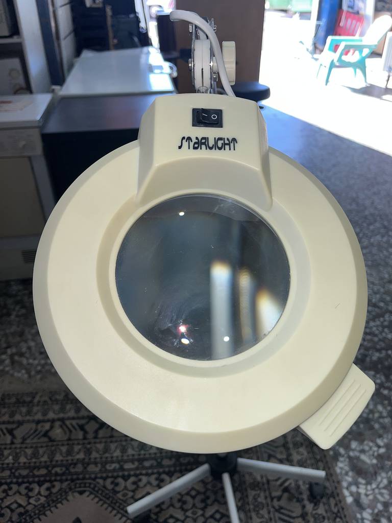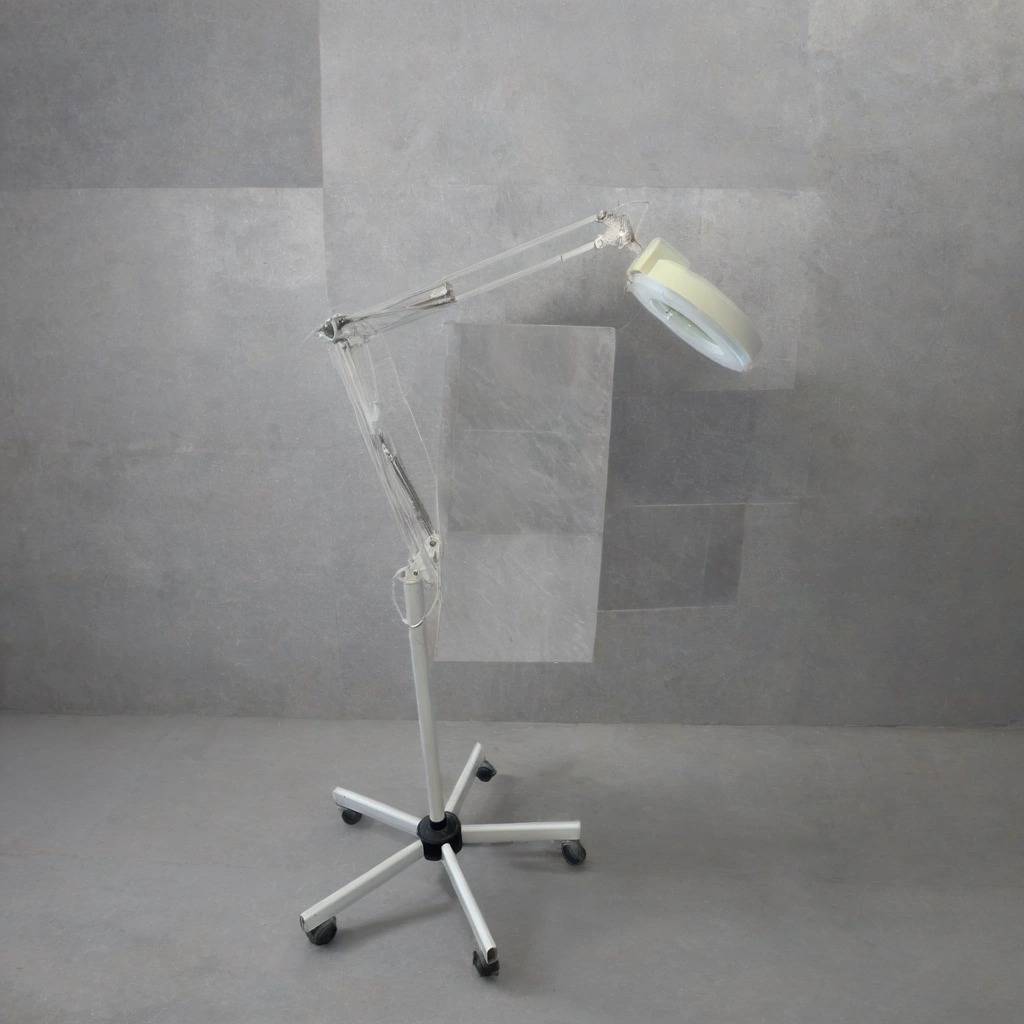 Lupa de esteticien con regulador de luz. Se trata de un equipo articulado que destaca por su lente de vidrio de alta calidad que proporciona una visualización clara y sin distorsiones para poder trabajar cómodamente a diario. Se puede regular en altura para realizar todo tipo de trabajos. Ideal para cumplir con la mayor precisión posible todo tipo de tratamientos. Como podemos observar en las fotografías se encuentra en buenas condiciones.