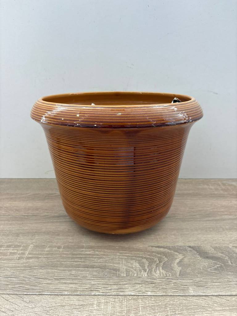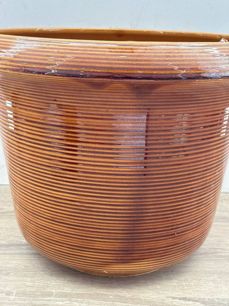 Macetero de gran tamaño fabricado en porcelana de buena calidad muy bonito y elegante en color marrón. Es un macetero ideal para acompañar con unas bonitas plantas en su interior y decorar en un salón comedor, un porche o un recibidor. Como podemos observar en las fotografías se encuentra en buenas condiciones.