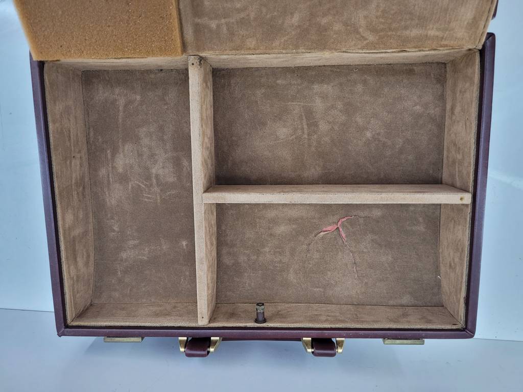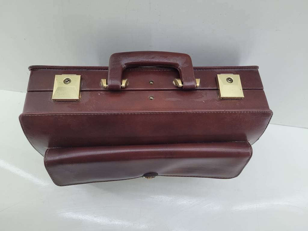 Maletín de médico fabricado con un material duradero y resistente de color marrón oscuro. Se trata de un maletín de médico que cuenta con un asa en la parte superior para poder cogerlo y transportarlo con mayor facilidad y tiene un cierre de color dorado. Es un maletín perfecto para llevar documentos. Como se puede observar en las fotografías se encuentra en buenas condiciones.