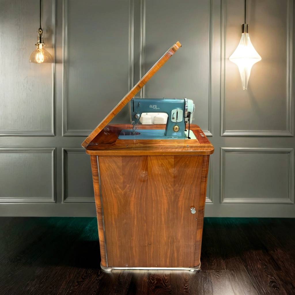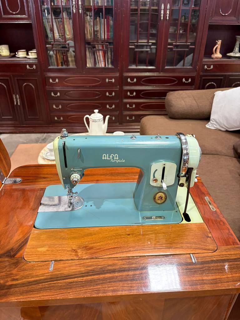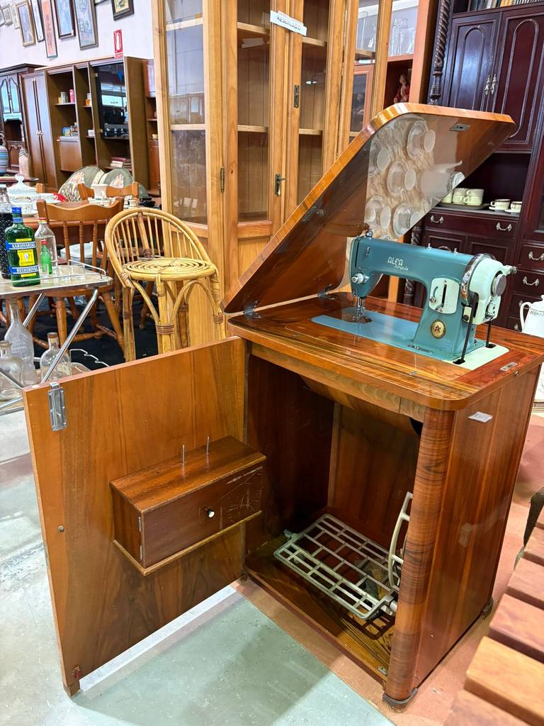 Máquina de coser de la prestigiosa y reconocida marca Alfa. Se trata de una máquina de coser que va insertada en su propio mueble de madera de tamaño mediano y resulta ideal para ponerla en cualquier espacio del hogar para utilizarla para coser prendas de ropa o de calzado. Como se puede observar en las fotografías se encuentra en buenas condiciones.