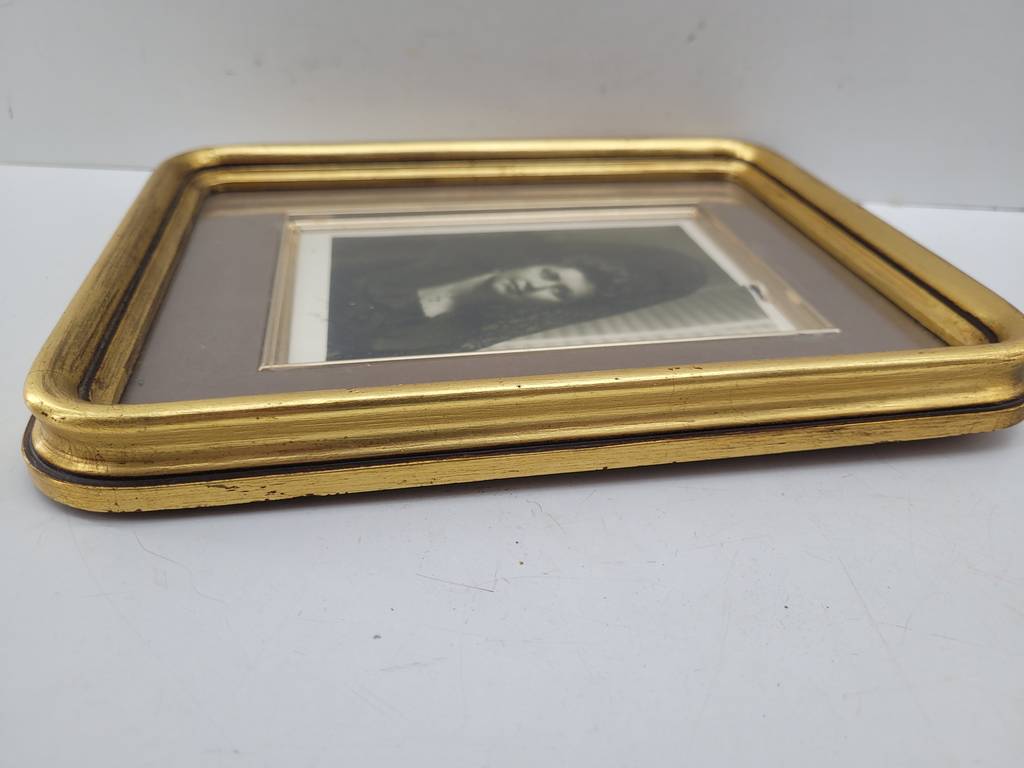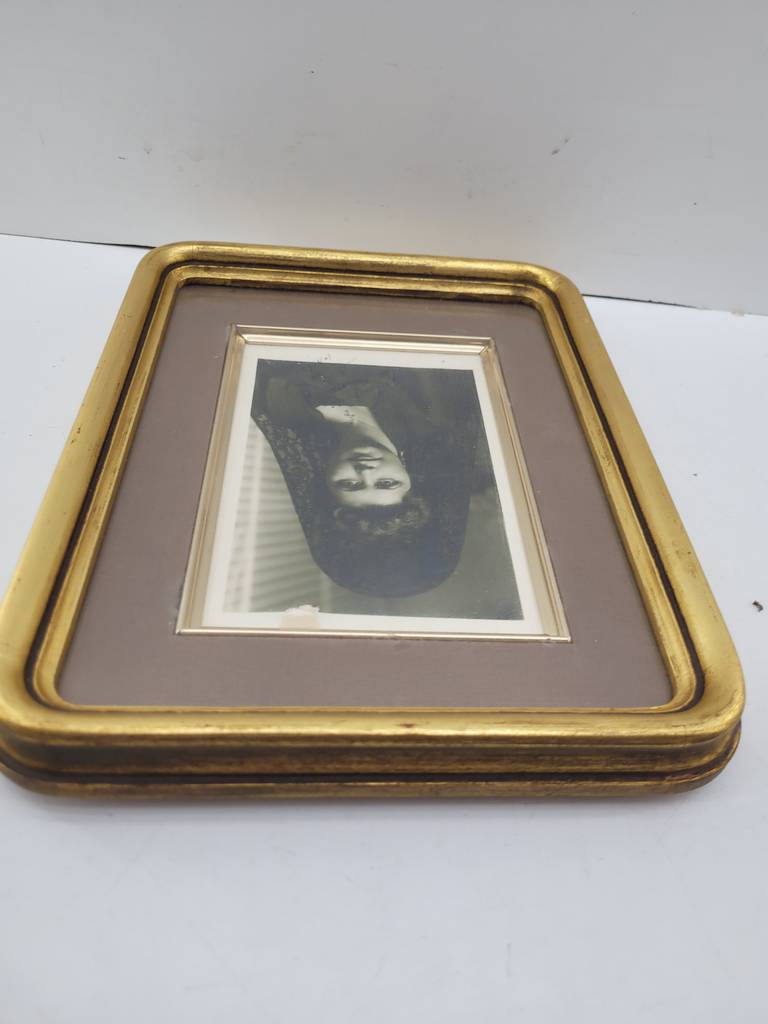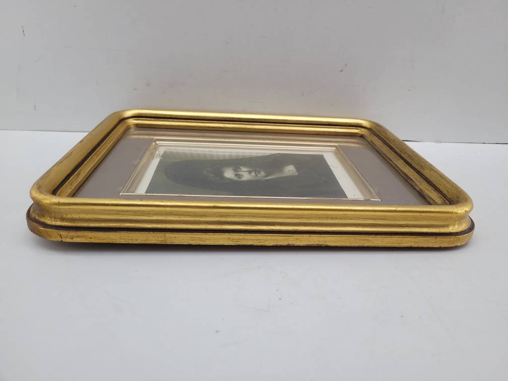 Marco vintage de tamaño mediano con un llamativo color dorado. Se trata de un marco de fotografías que tiene un grosor ancho y una forma rectangular con los bordes redondeados y sirve para poder poner una fotografía. Es un marco perfecto para colocarlo encima de una cómoda en un salón comedor. Como se puede observar en las fotografías se encuentra en buenas condiciones.