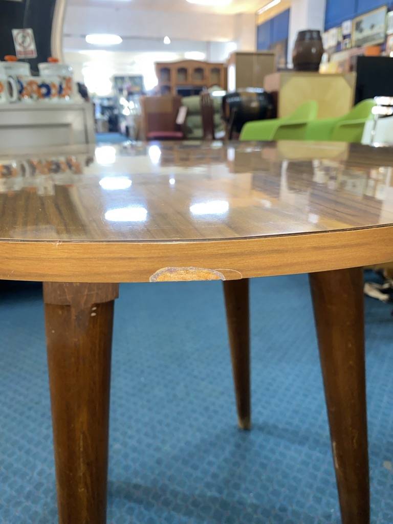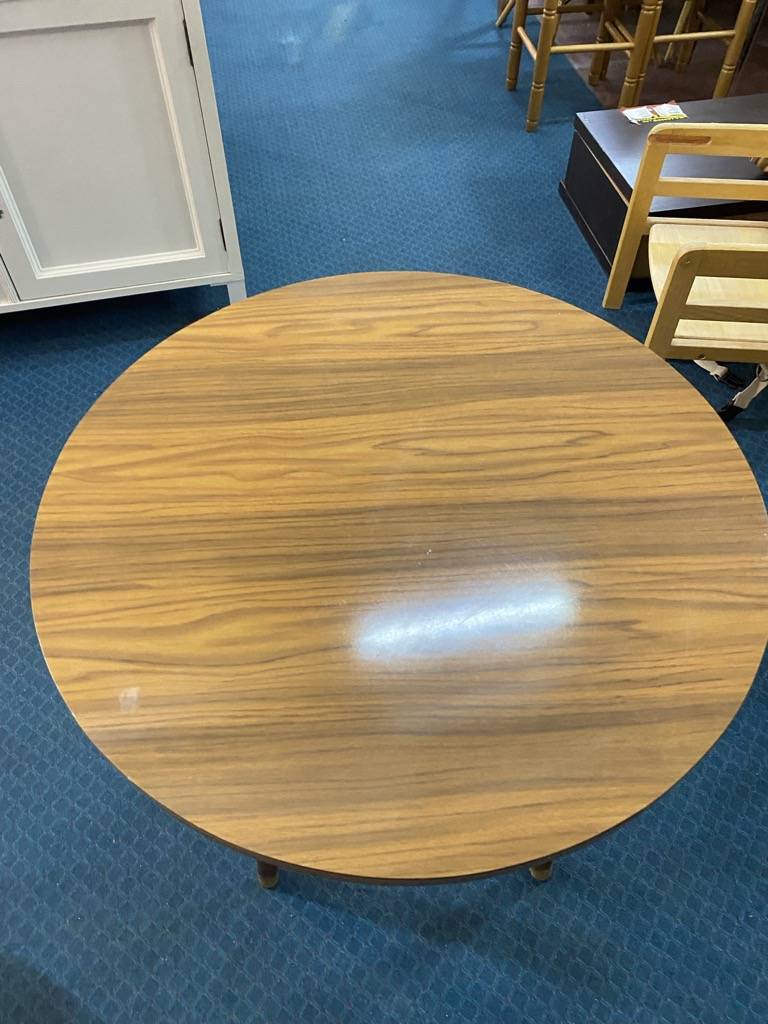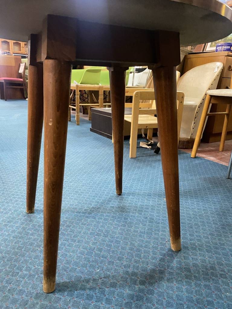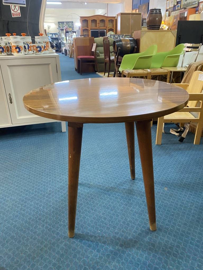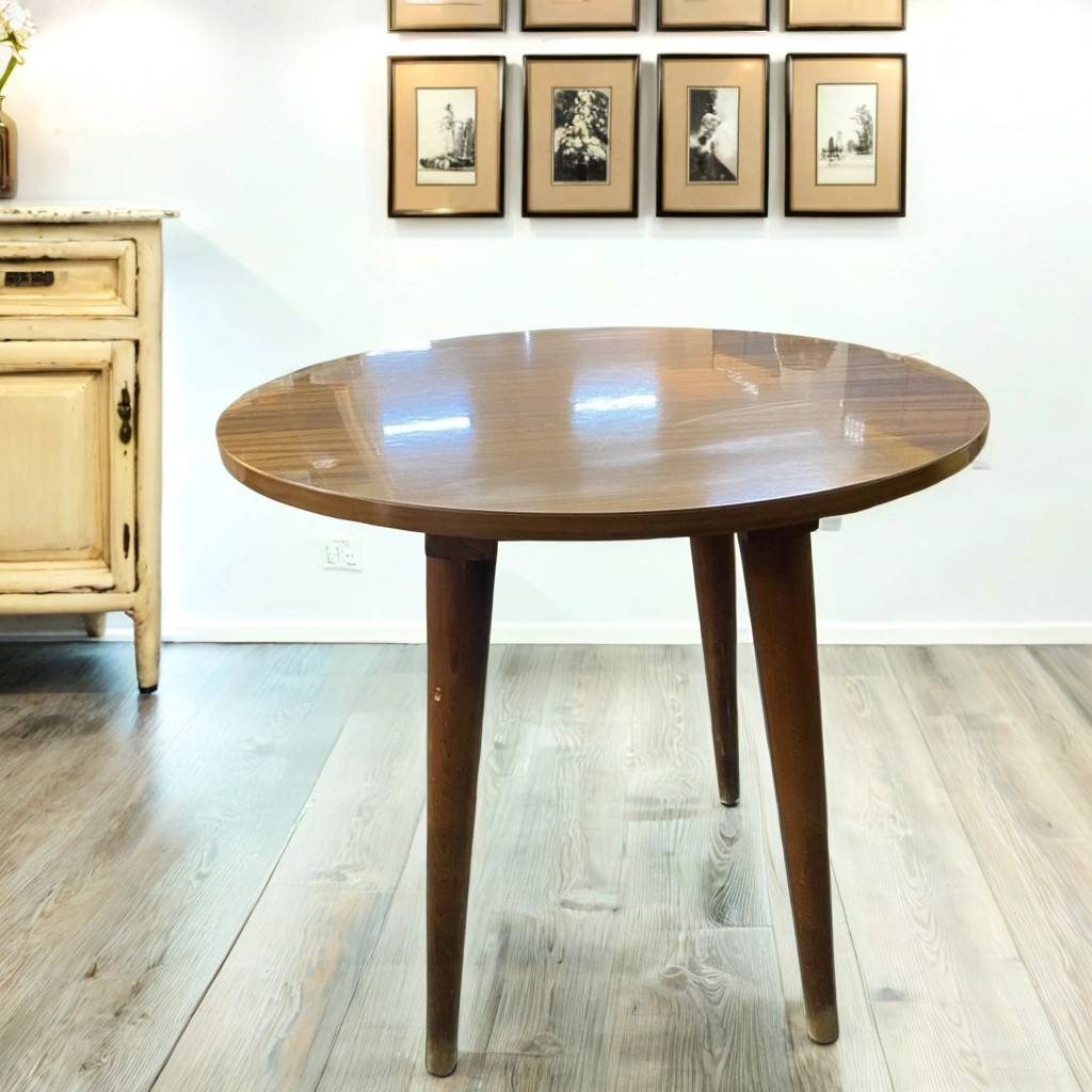 Mesa auxiliar cuya superficie tiene una forma redondeada y está fabricada en madera de buena calidad de color marrón oscuro. Se trata de una mesa auxiliar que tiene cuatro patas robustas y es ideal para colocarla tanto en un salón comedor como en una cocina, ya que es muy práctica y versátil. Como se puede observar en las fotografías se encuentra en buenas condiciones.