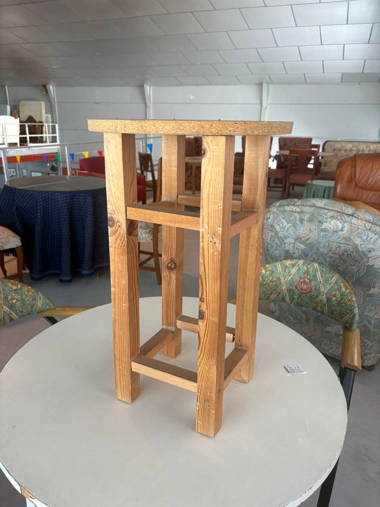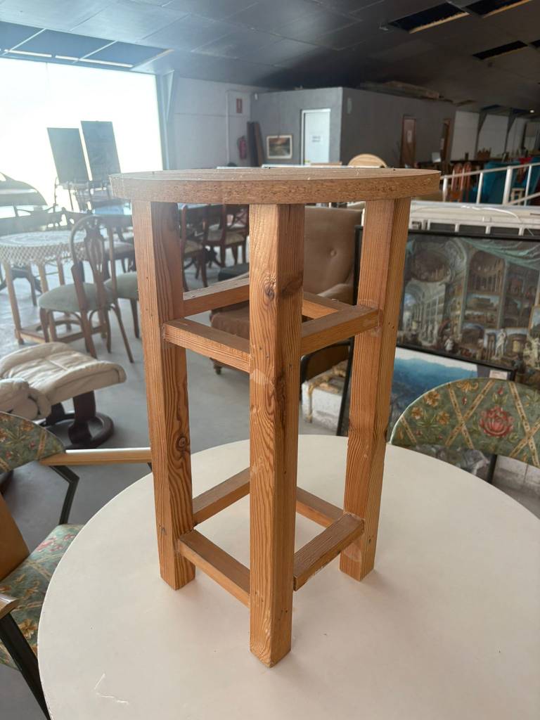 Mesa camilla alta fabricada en madera de buena calidad de color marrón claro. Se trata de una mesa camilla de estatura alta que cuenta con cuatro patas robustas y resistentes y tiene una superficie redonda. Es una mesa perfecta para colocarla en un salón comedor o para guardarla y utilizarla cuando sea necesario. Como se puede observar en las fotografías se encuentra en buenas condiciones.
