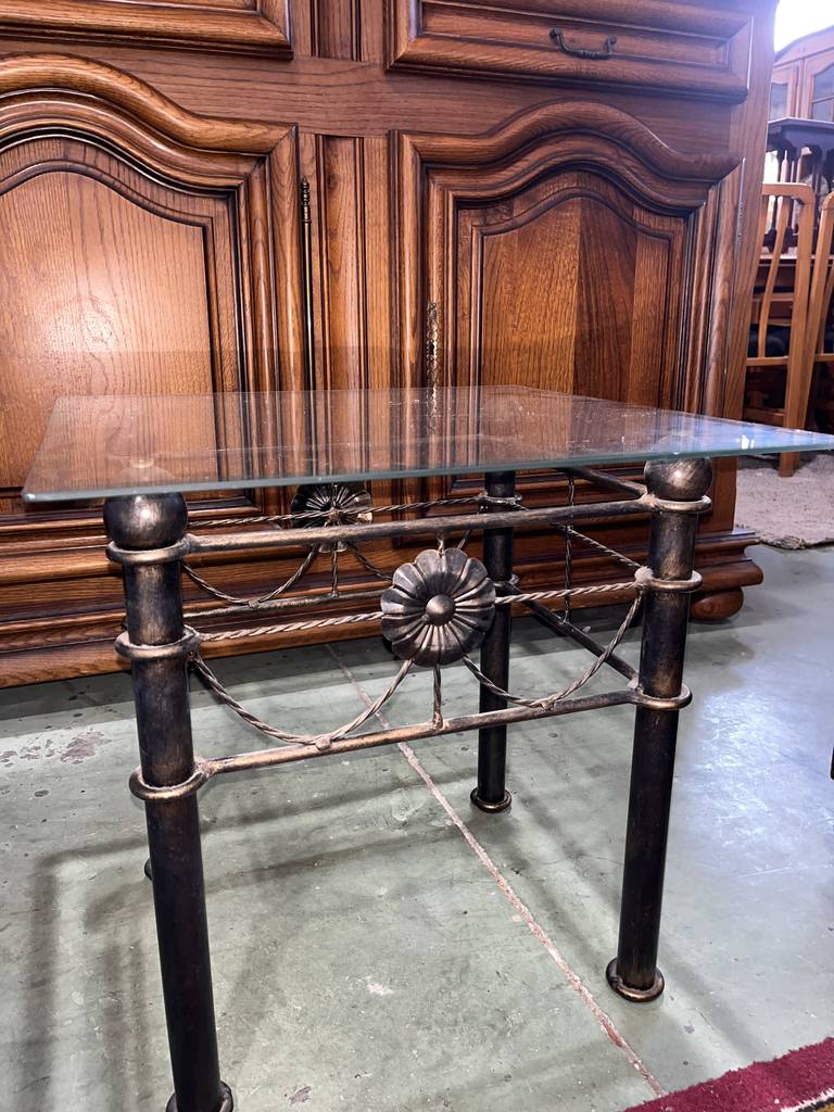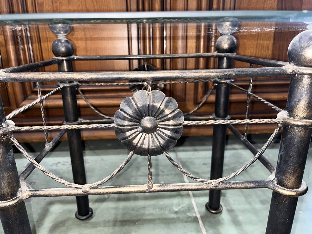 Mesa de centro cuya estructura está fabricada en metal de buena calidad de color negro y tiene una superficie de cristal grueso. Se trata de una mesa de centro que tiene un cristal cuadrado resistente y cuenta con cuatro patas robustas. Es una mesa ideal para colocarla en el centro de un salón comedor. Como se puede observar en las fotografías se encuentra en buenas condiciones.
