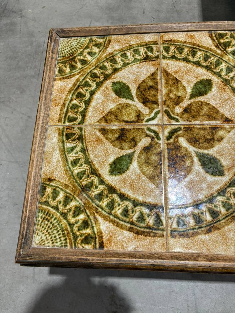 Mesa de centro con forma rectangular que ha sido fabricada con madera de buena calidad y robusta. Esta bonita mesa de centro es muy original con una parte superior compuesta por azulejos con un bonito dibujo que la hace resaltar. Es ideal para colocar en un salón comedor frente al sofá. Como podemos observar en las fotografías se encuentra en buenas condiciones.