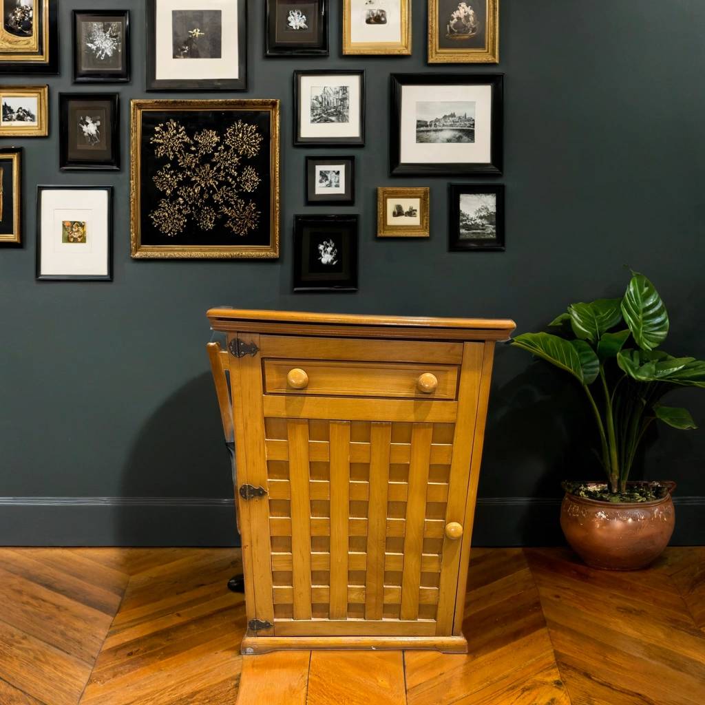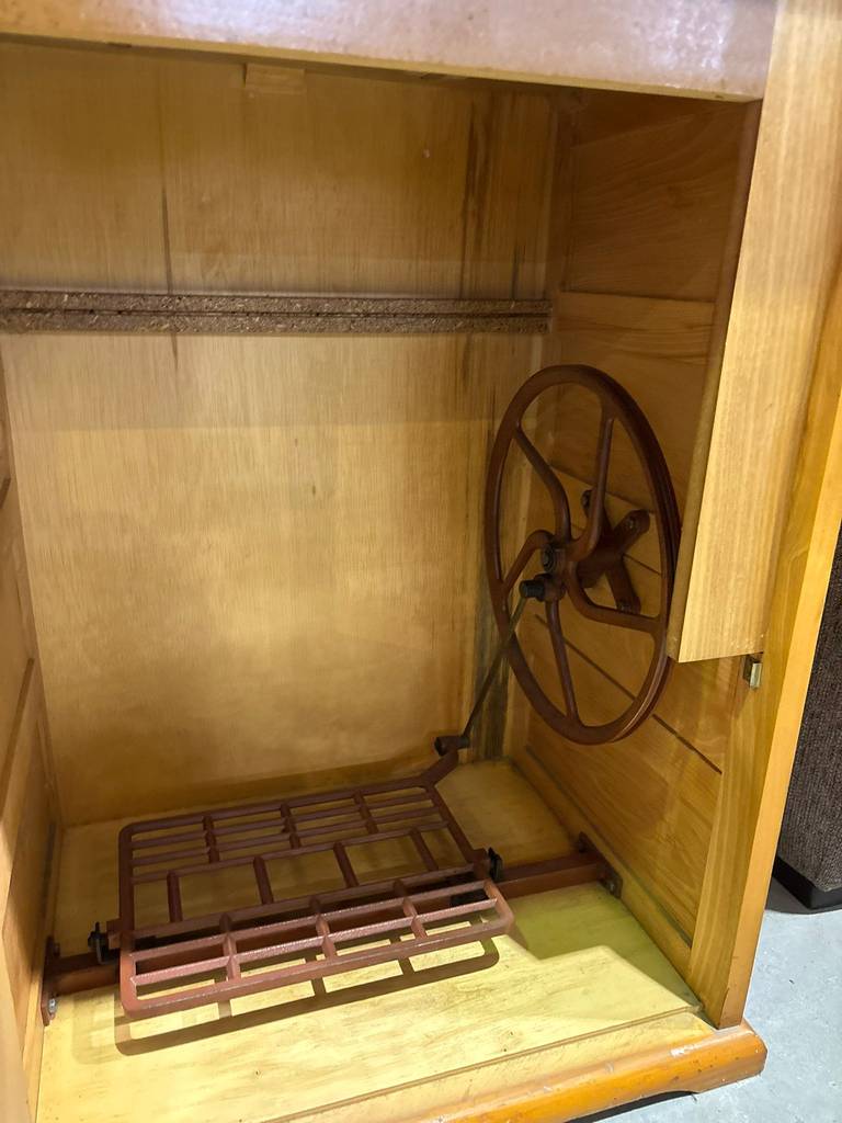 Mesa para máquina de coser de estilo vintage que ha sido fabricada con madera de buena calidad y robusta. Se trata de una mesa completa con cajón en la puerta, tablón abatible superior con hueco para colocar la máquina y el pie de la máquina de coser en el interior. Como podemos observar en las fotografías se encuentra en buenas condiciones.