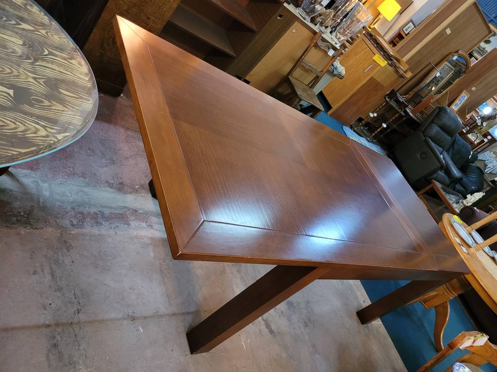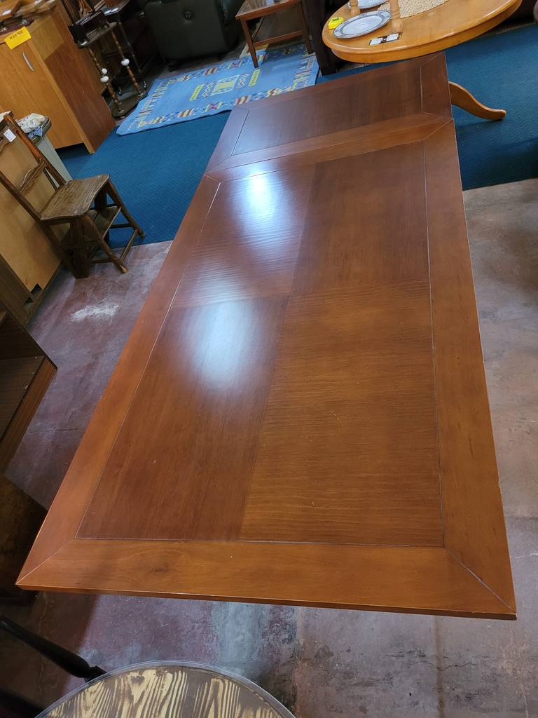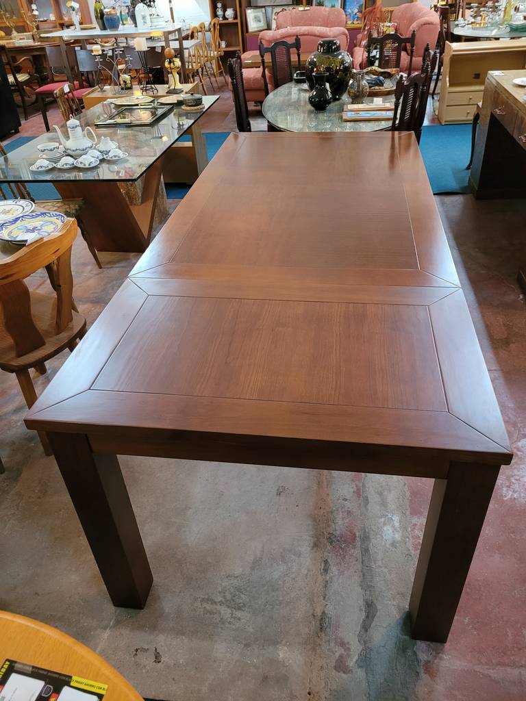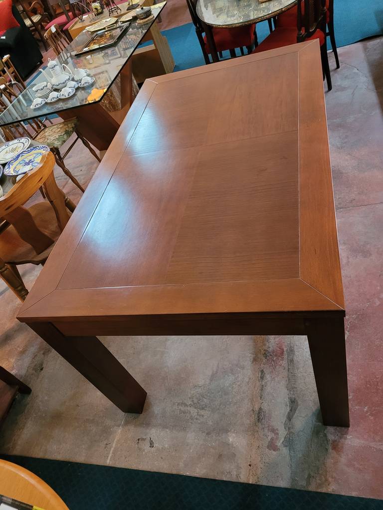 Mesa extensible fabricada en madera de buena calidad de color marrón oscuro. Se trata de una mesa de madera que tiene cuatro patas robustas y resistentes y cuenta con una superficie rectangular y amplia. Es una mesa que se hace extensible por lo que aumenta su tamaño y resulta ideal para colocarla en un salón comedor. Como se puede observar en las fotografías se encuentra en buenas condiciones.