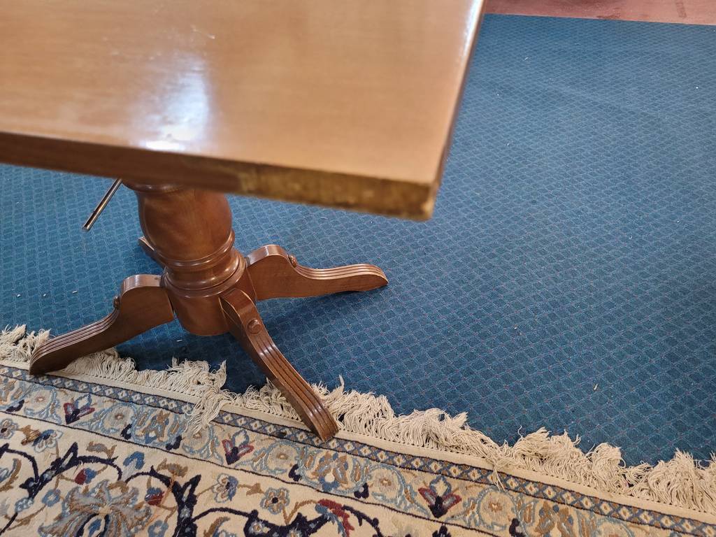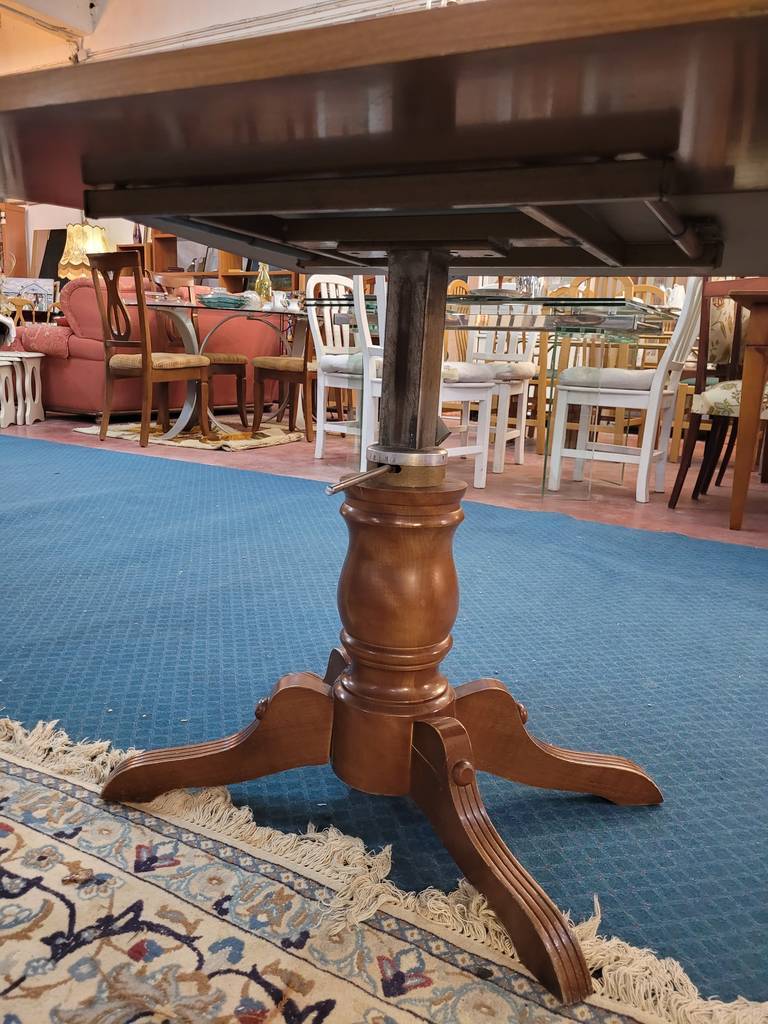 Mesa estilo Louis Philippe system fabricada en madera de caoba de muy buena calidad de color marrón oscuro. Se trata de una mesa de madera de caoba que tiene cuatro patas robustas y cuenta con una superficie de gran tamaño con una forma rectangular. Es una mesa perfecta para ponerla en un salón comedor de gran tamaño. Como se puede observar en las fotografías se encuentra en buenas condiciones.