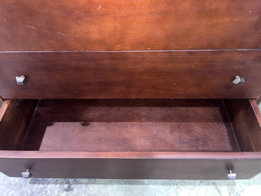 Mueble auxiliar fabricado en madera de buena calidad y robusta de color marrón oscuro. Se trata de un mueble auxiliar formado por tres cajones amplios y una puerta lateral con tiradores metálicos en forma de cuadrado. Es un mueble ideal para colocarlo tanto en un salón comedor como en un dormitorio. Como se puede observar en las fotografías se encuentra en buenas condiciones.