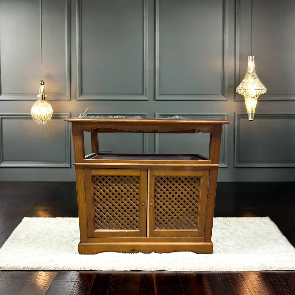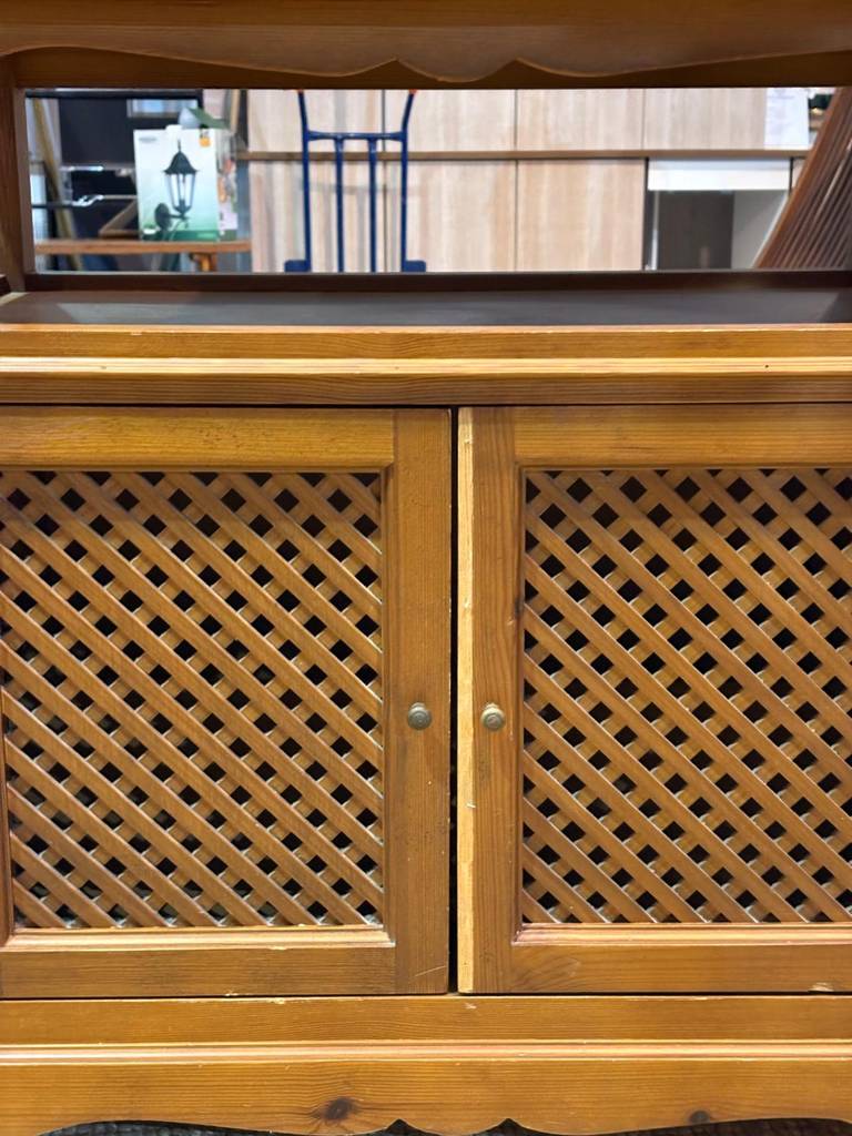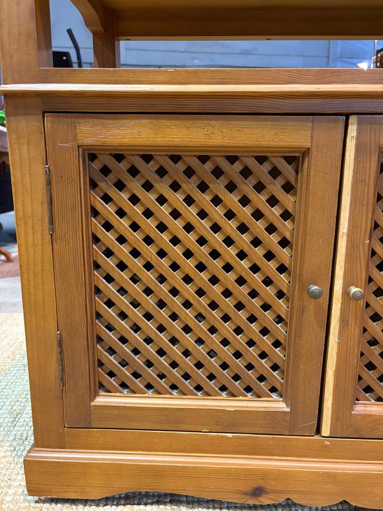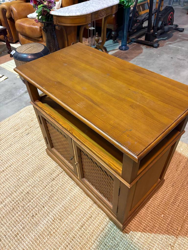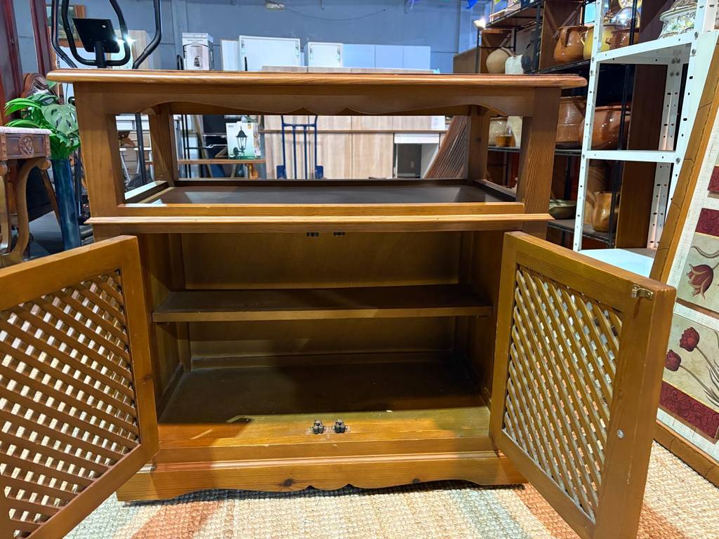 Mueble de televisión o televisor fabricado en madera provenzal de buena calidad de color marrón claro. Se trata de un bonito y elegante mueble de televisión que cuenta con dos puertas con tiradores circulares y resulta perfecto para colocarlo en un salón comedor y poner encima una televisión. Como se puede observar en las fotografías se encuentra en buenas condiciones.