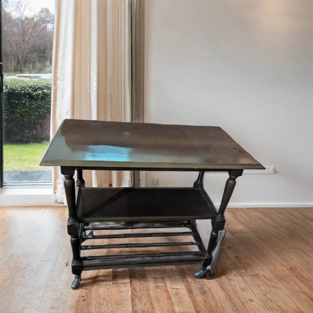 Mueble de televisión o televisor de estilo clásico fabricado en madera de buena calidad de color negro. Se trata de un mueble que tiene una superficie rectangular y alargada y dispone de una parte inferior con listones de madera unidos. Es un mueble ideal para colocar encima una televisión y ponerlo en un salón comedor de estilo clásico. Como se puede observar en las fotografías se encuentra en buenas condiciones.