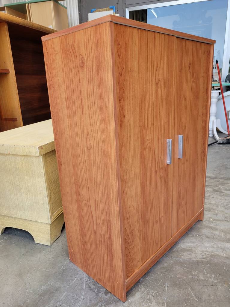 Mueble de estilo bajo que ha sido fabricado con madera de buena calidad y robusta. Se compone de una parte frontal con dos puertas y en su interior contiene gran espacio de almacenamiento con múltiples baldas. Es un mueble ideal para utilizar como zapatero. Como podemos observar en las fotografías tiene algunos daños en la parte inferior, pero cumple su función perfectamente.