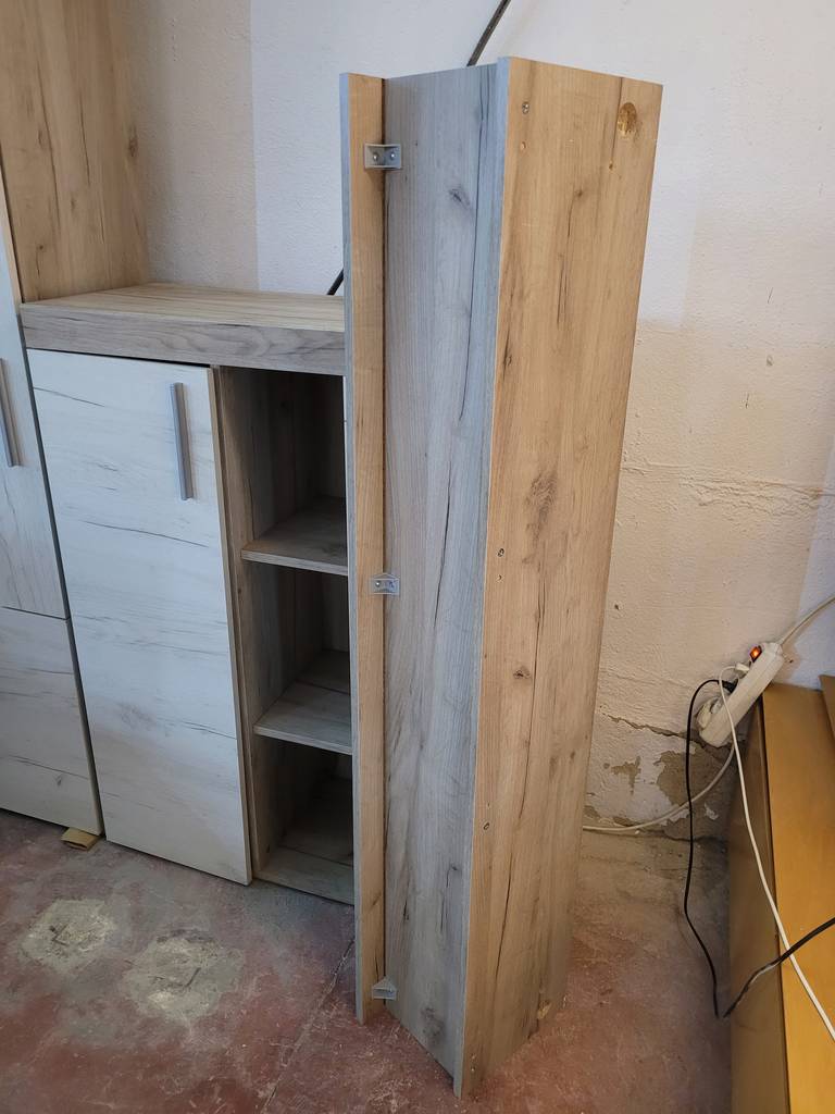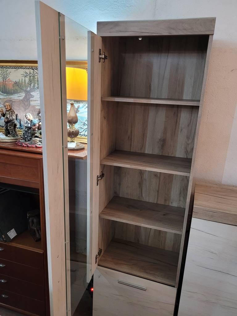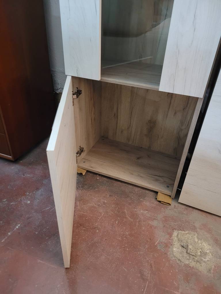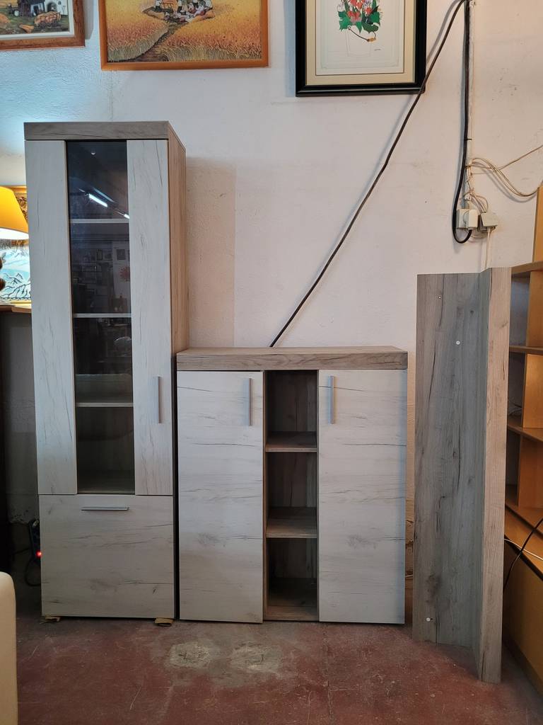 📐 Medidas Repisa (ancho x fondo x alto): 136x21x27cm. Vitrina 54x35x195cm. Armario bajo 88x35x98cm.