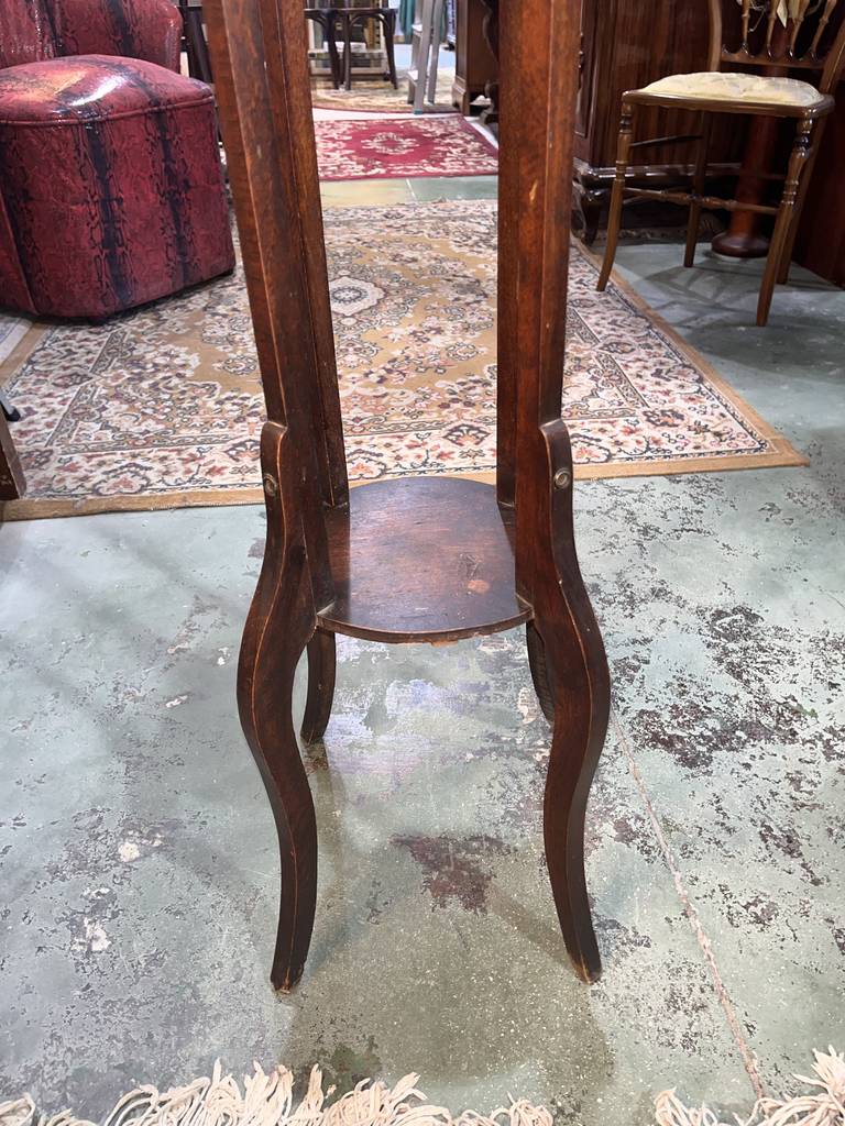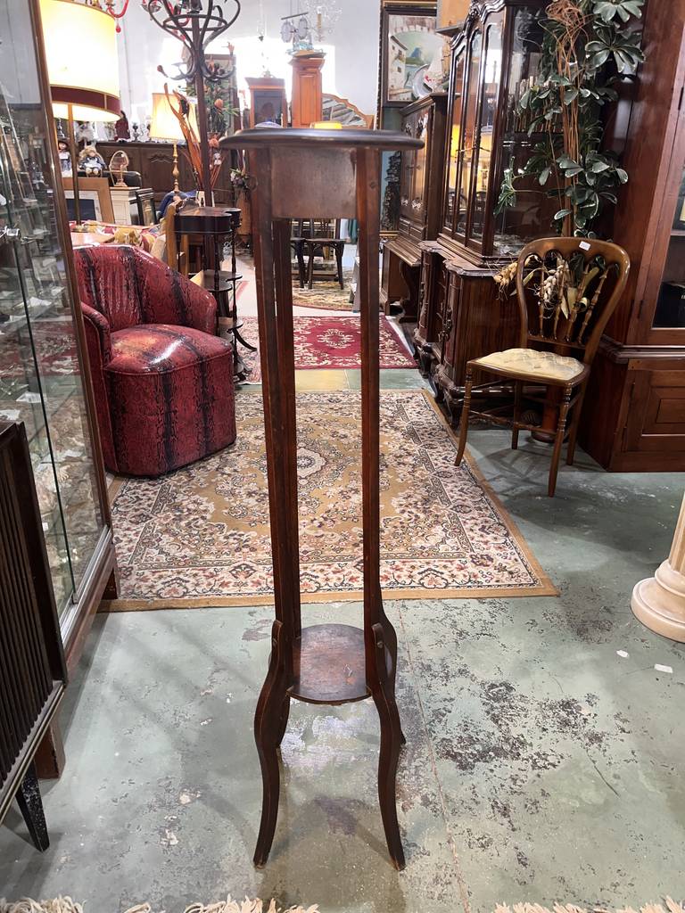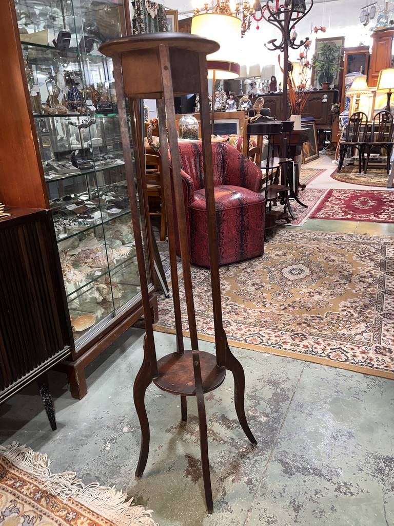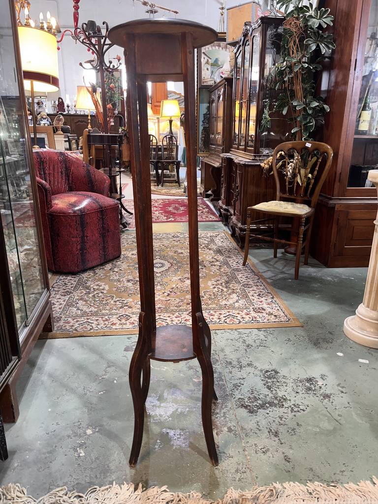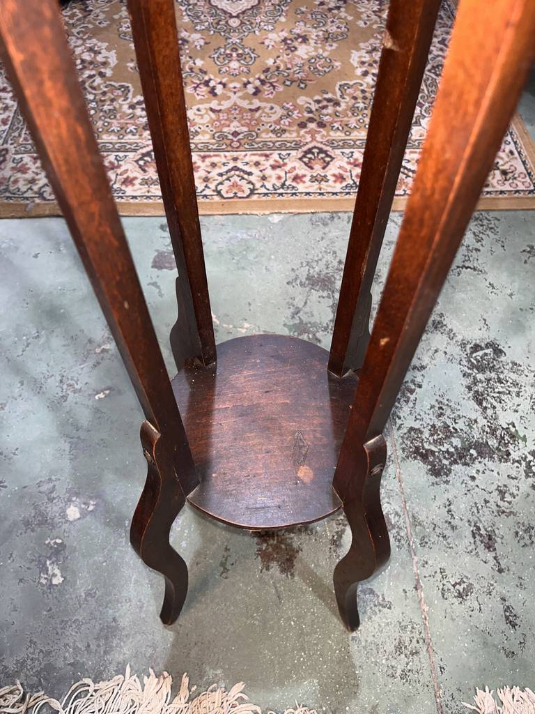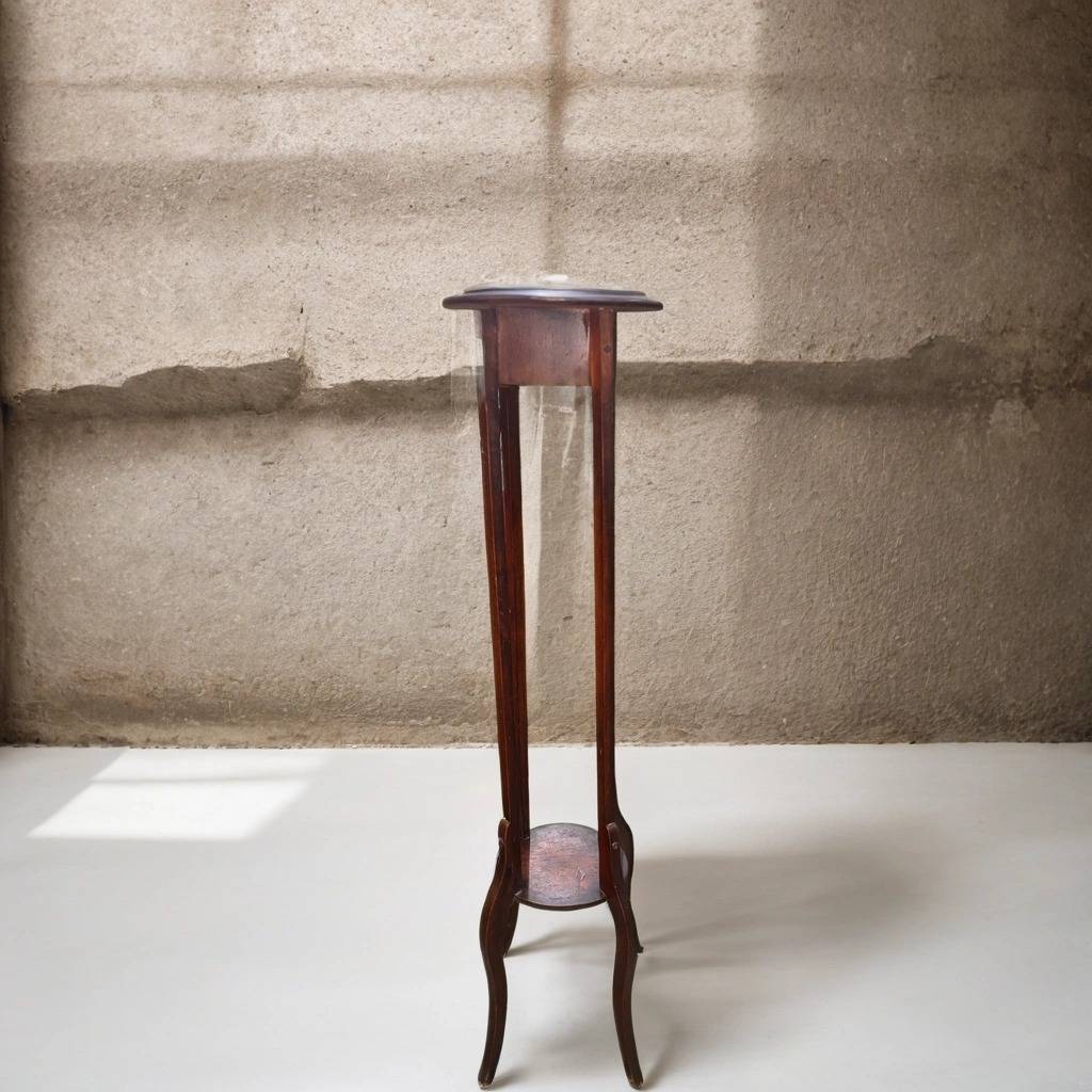 Peana fabricada en madera de buena calidad de estatura elevada. Se trata de una peana de madera de color marrón oscuro que tiene cuatro patas robustas y altas. Es una peana alta que resulta perfecta para colocarla en cualquier rincón o espacio del hogar. Como se puede observar en las fotografías se encuentra en buenas condiciones para ser utilizada.
