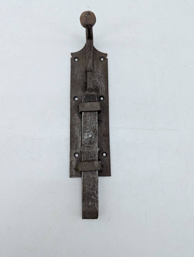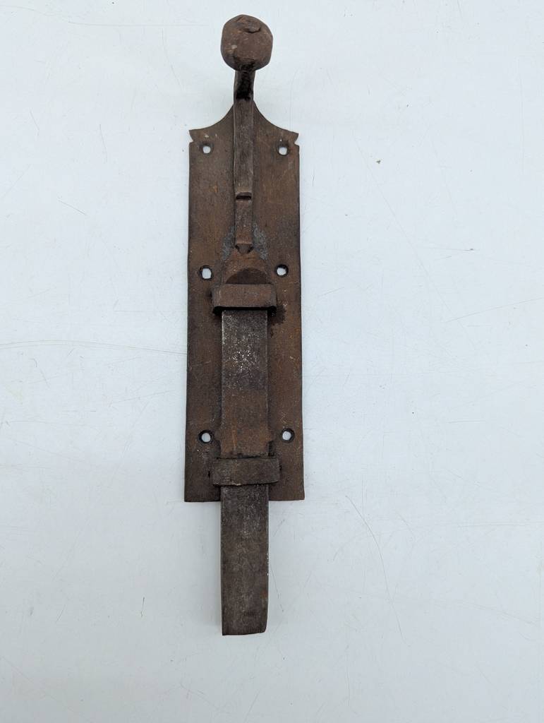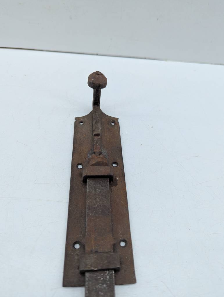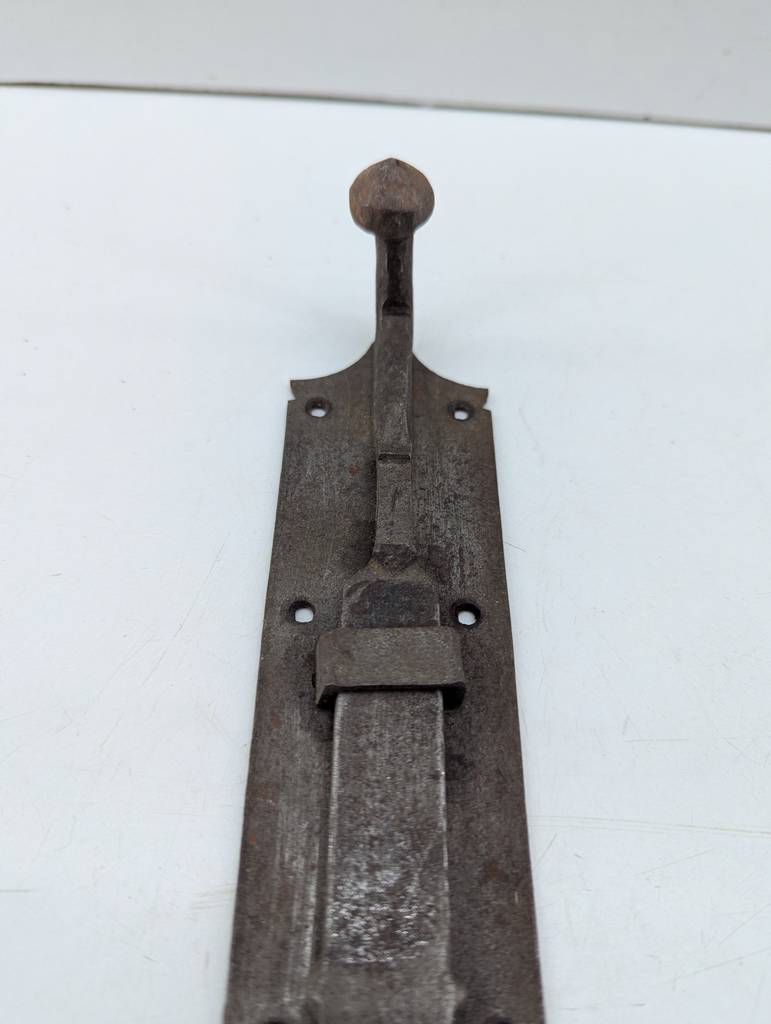 Pestillo de puerta de estilo clásico fabricado en metal de buena calidad. Se trata de un pestillo de puerta antiguo que cuenta con seis agujeros para poder clavarlo a una puerta poniendo seis clavos o tornillos. Es un pestillo ideal para colocarlo en puertas clásicas o antiguas. Como se puede observar en las fotografías se encuentra en buenas condiciones.