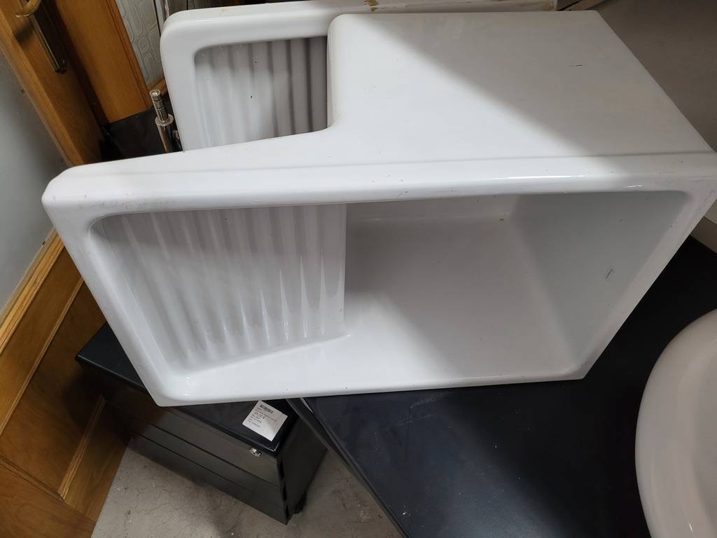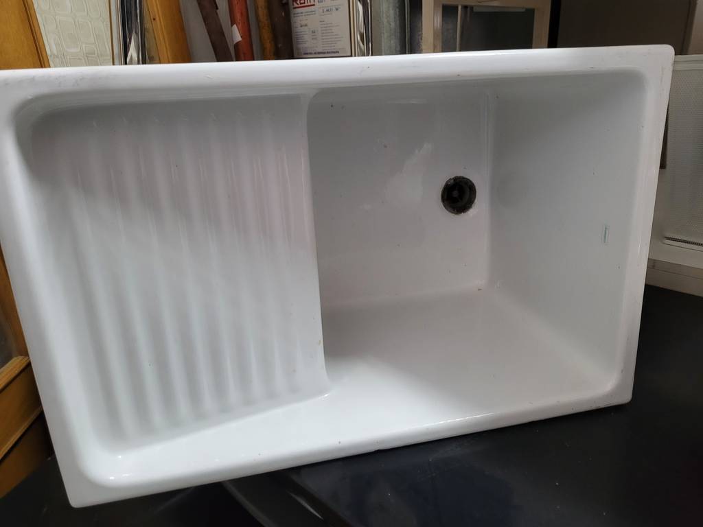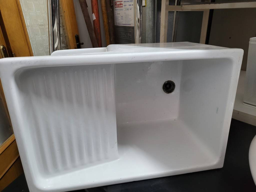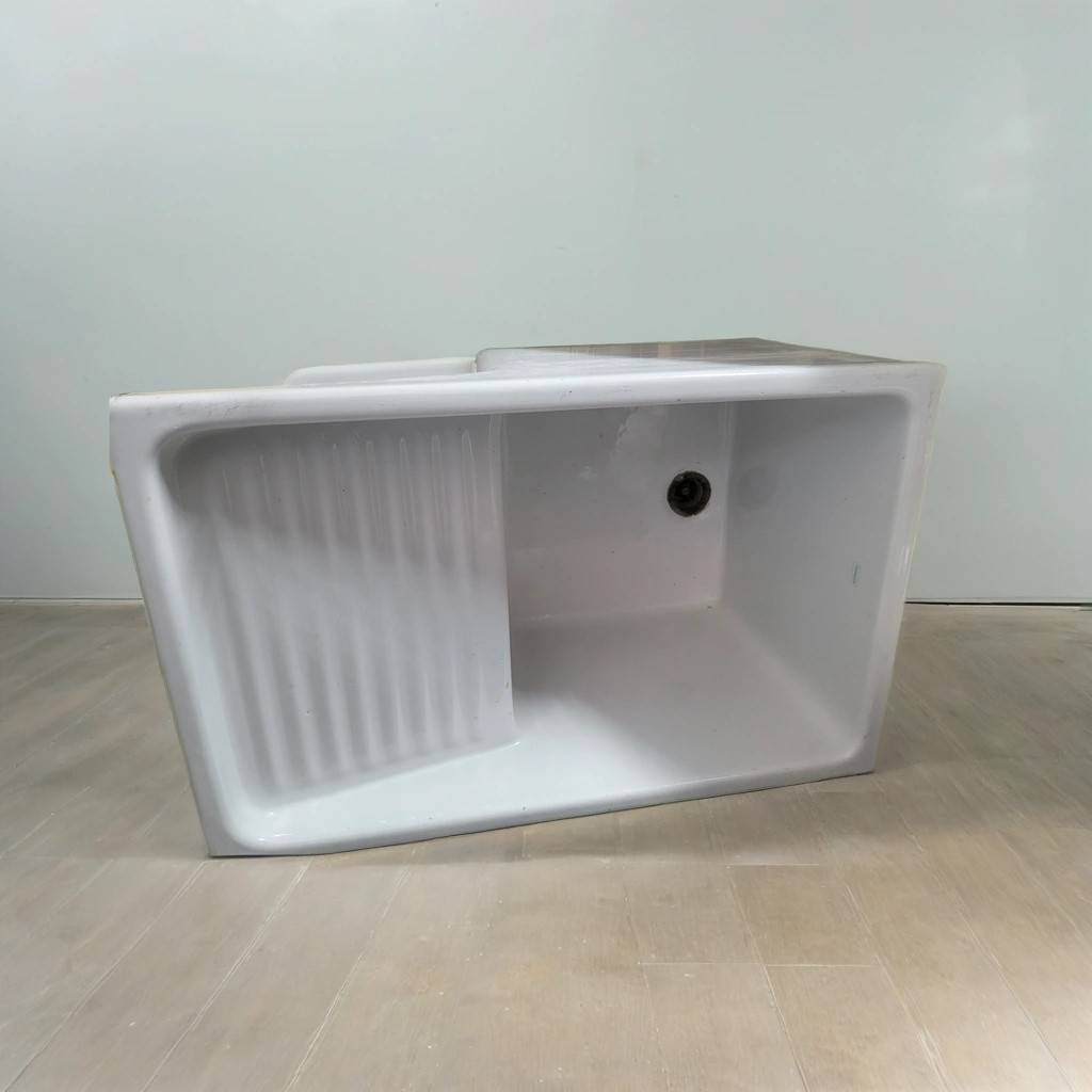 Pila de lavar de gran tamaño de la reconocida marca Sangra de color blanco. Se trata de una pila de lavar que se puede colocar tanto en una zona interior del hogar como en una zona exterior debido a su resistente material que soporta muy bien las inclemencias del tiempo. Como se puede observar en las fotografías se encuentra en buenas condiciones.