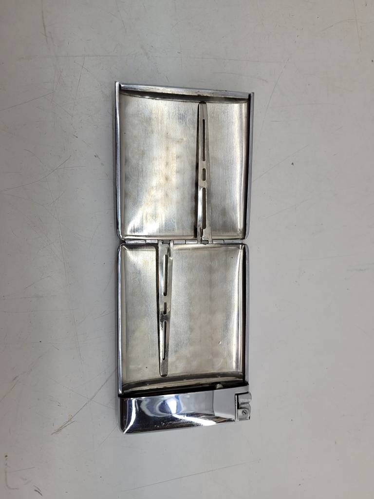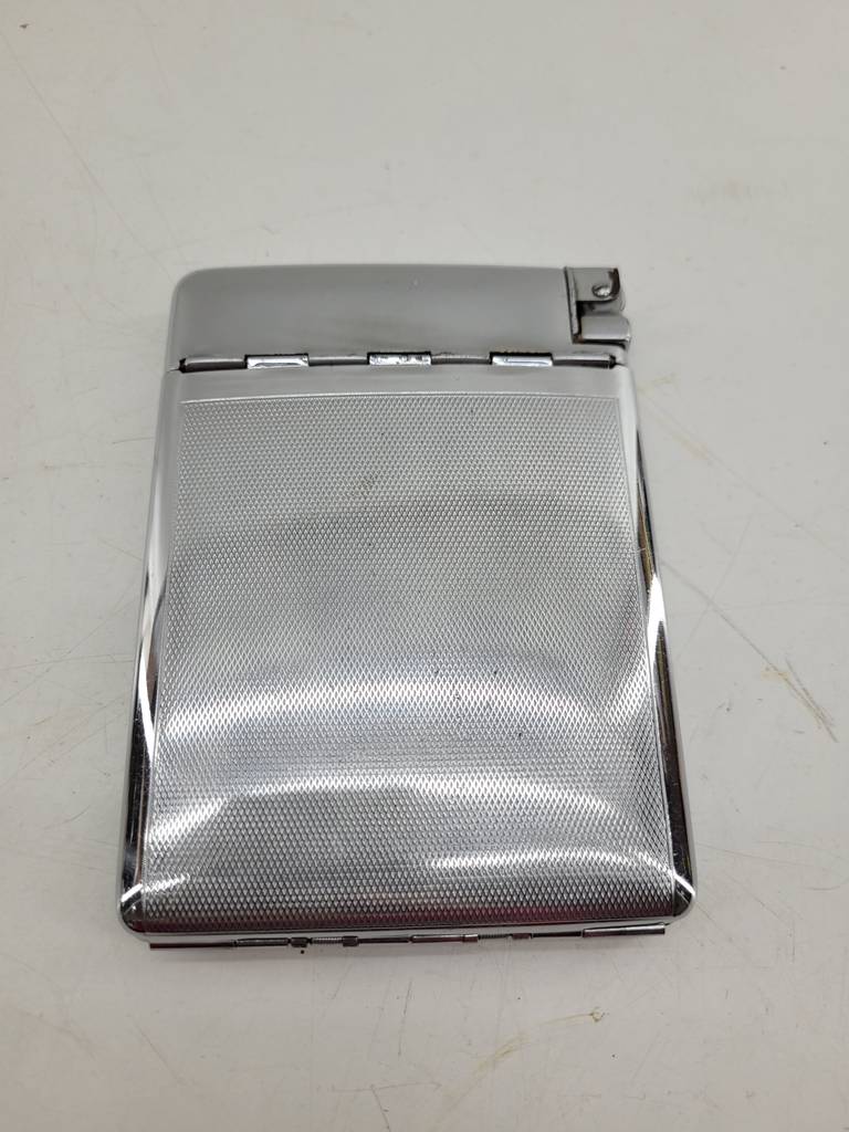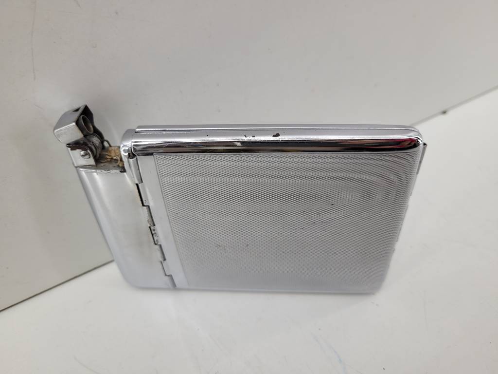 Pitillera combinada con encendedor metalizado brillante. Se trata de una pitillera práctica y elegante para llevar todo en uno diariamente. Con un diseño compacto nos cabe fácilmente en el bolsillo o bolso. El encendedor está integrado en un lateral para comodidad inmediata en cualquier momento. Como podemos observar en las fotografías se encuentra en buenas condiciones.