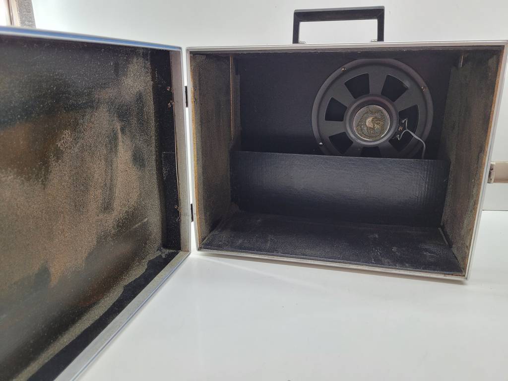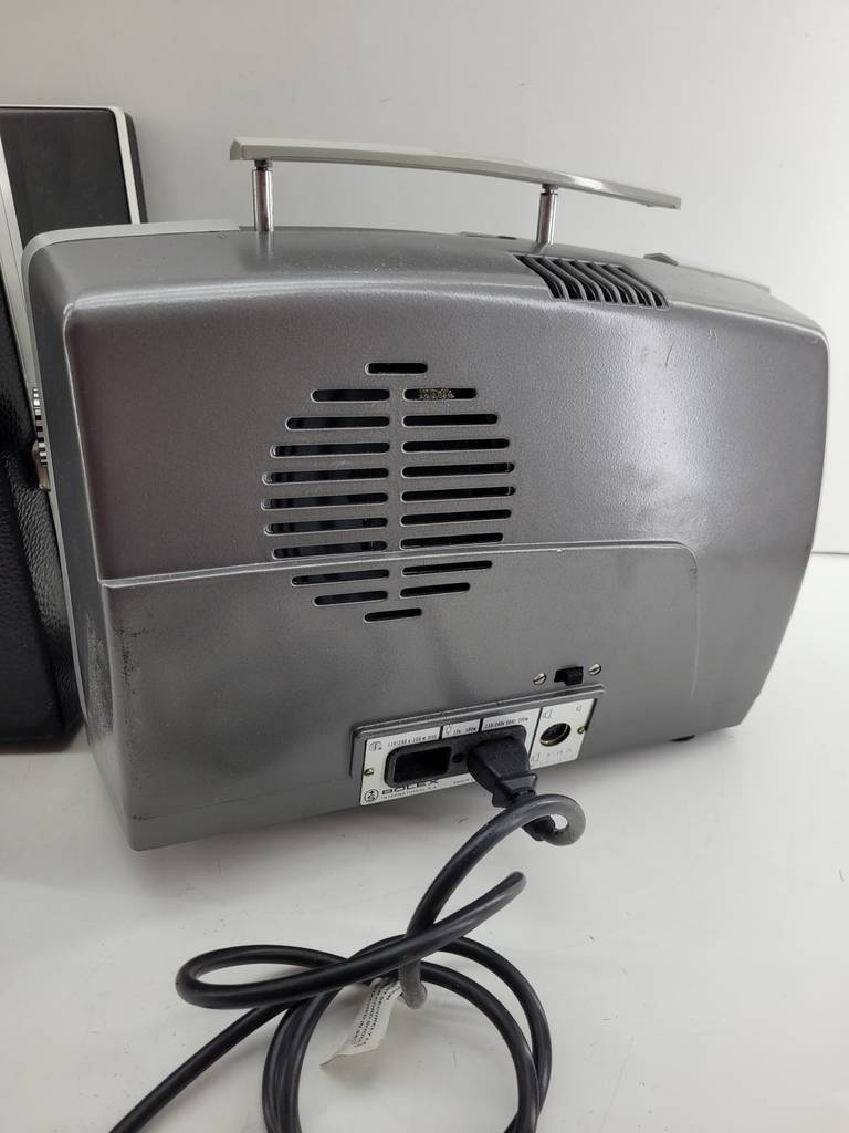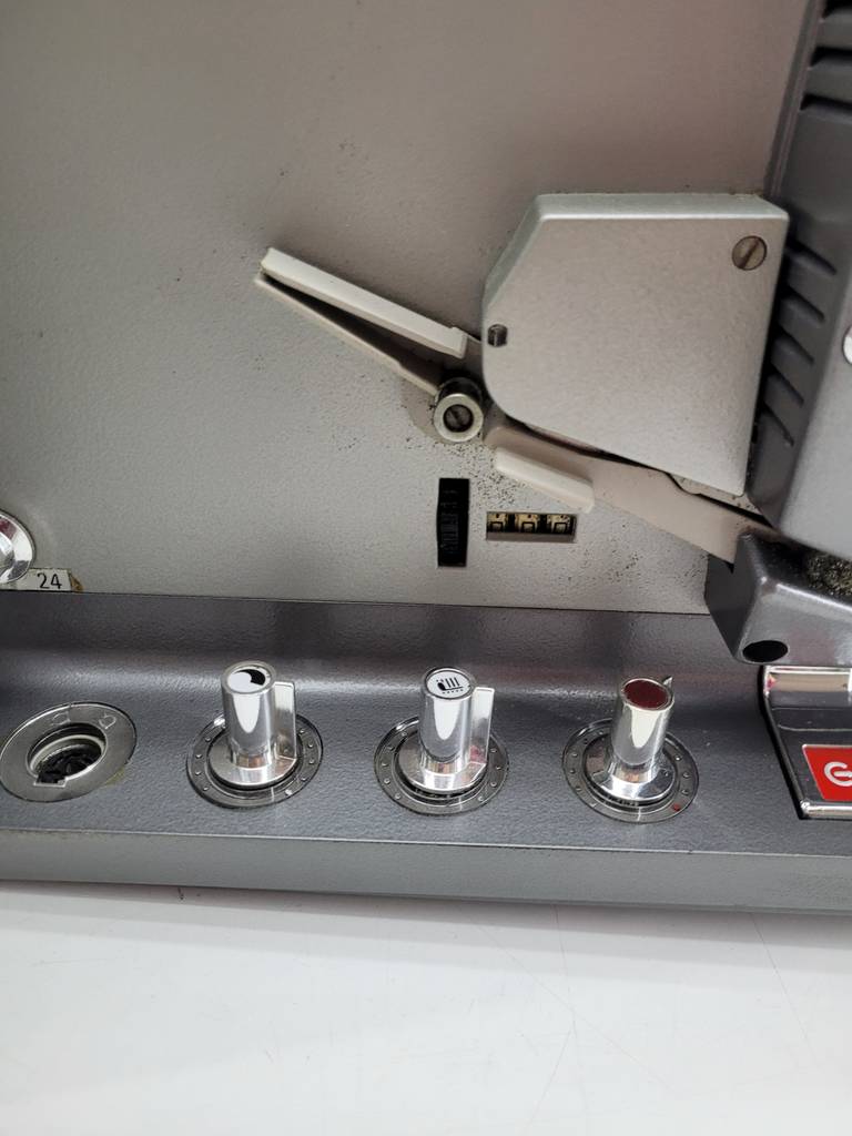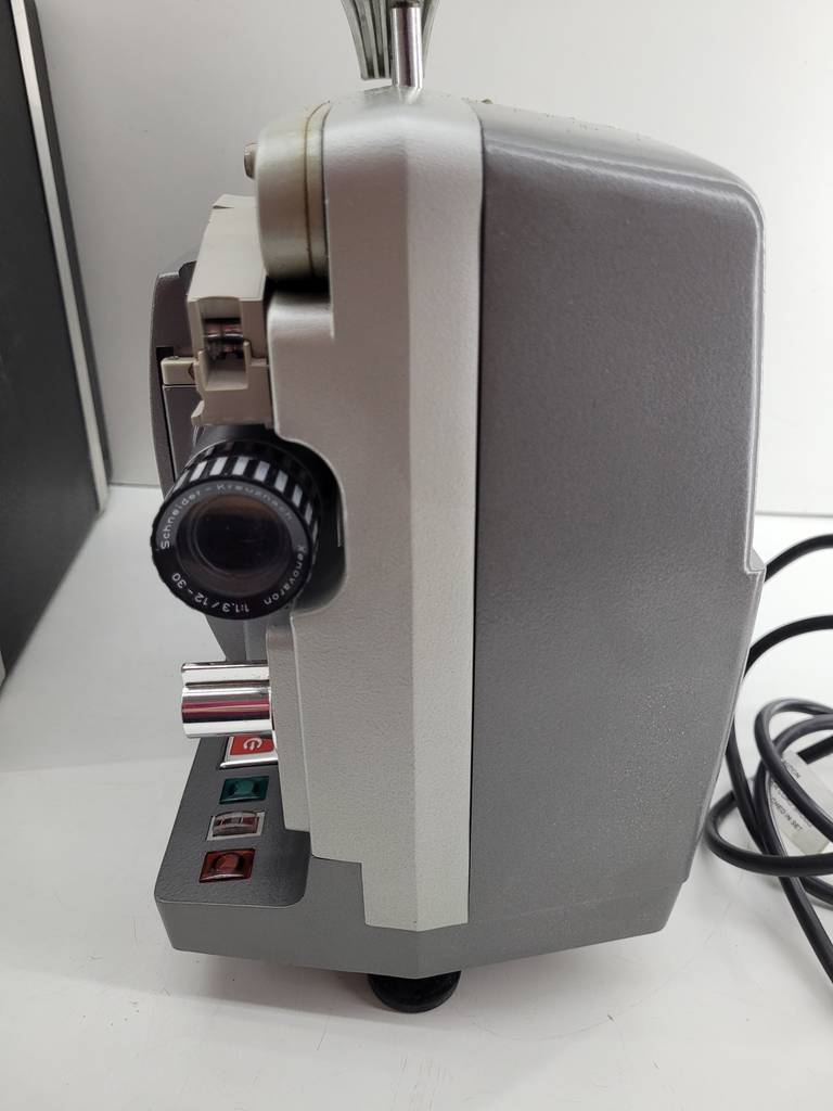 Proyector de la marca Bolex modelo sm8 súper 8 de ocho milímetros que viene en su maletín original. Se trata de un proyector Bolex de súper ocho que se utilizaba mucho en los años ochenta del pasado siglo veinte. Es un proyector al que le falta el cable que lo une al altavoz y va en su maletín original. Como se puede observar en las fotografías se encuentra en buenas condiciones.
