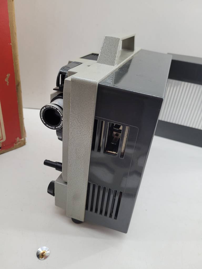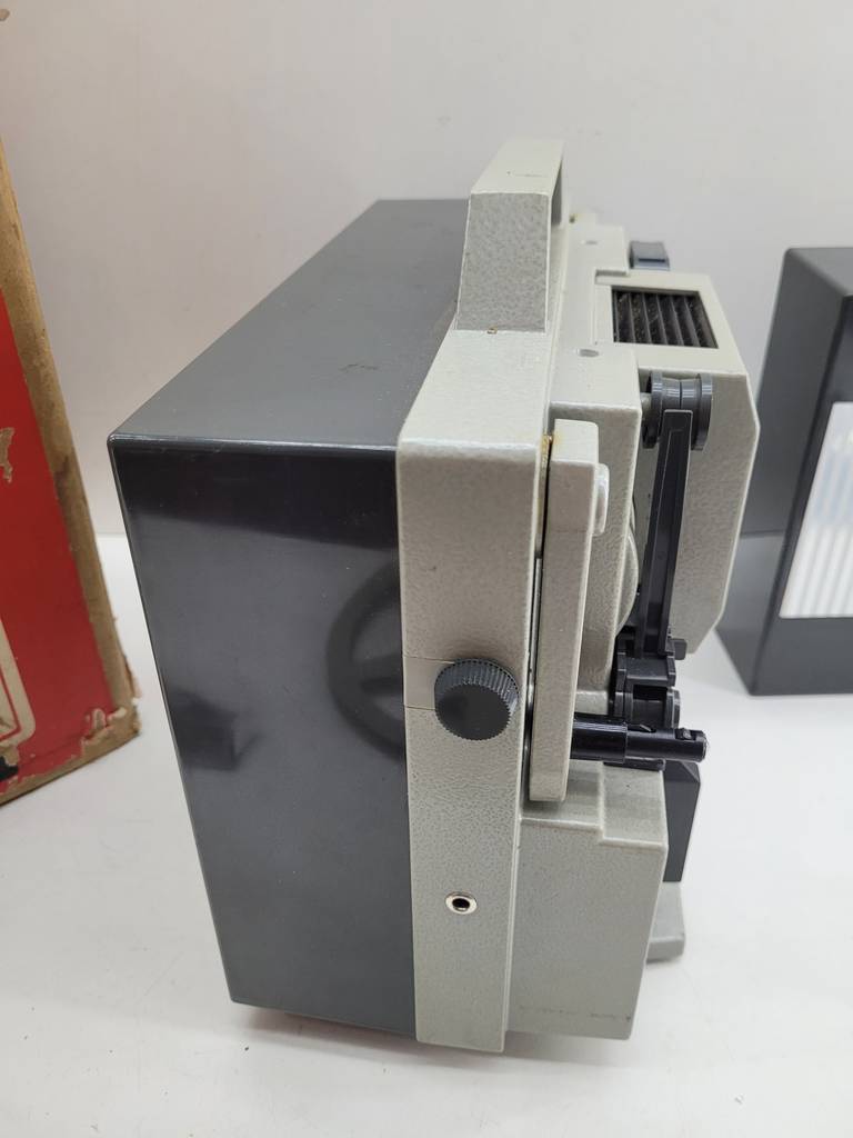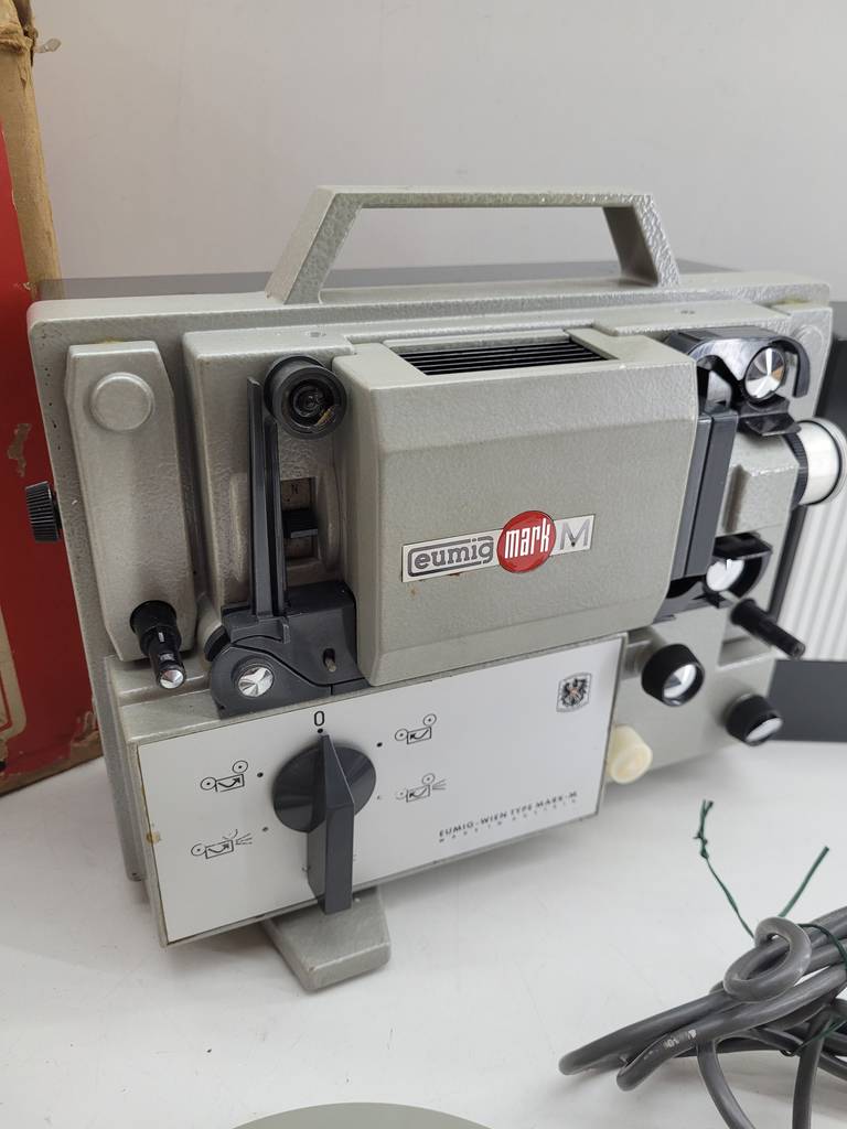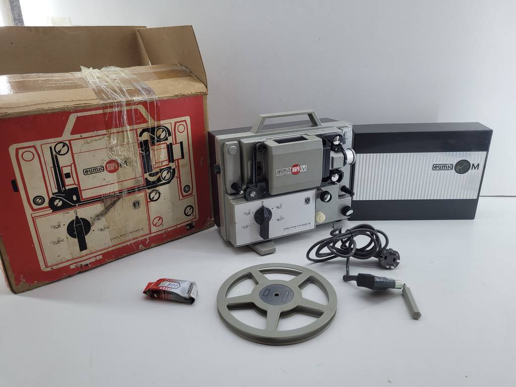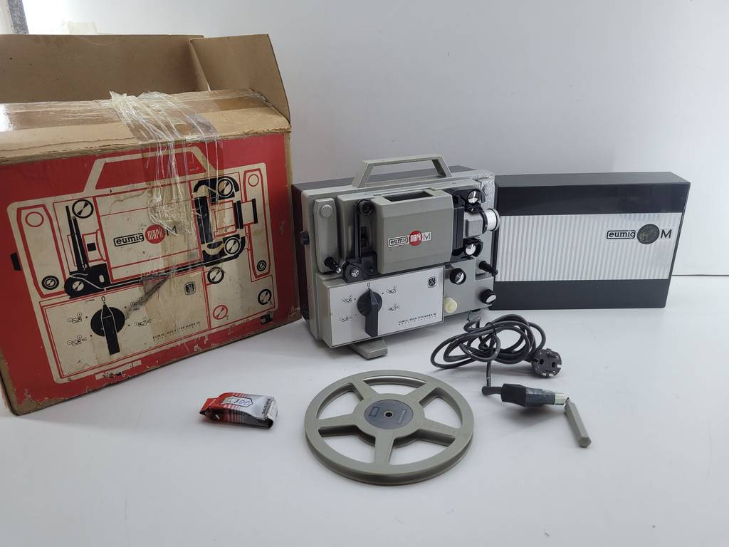 Proyector de super 8 de la marca Eumig Mark. Se trata de un antiguo proyector de películas de super ocho que viene en su caja original y resulta perfecto para coleccionistas de objetos antiguos o para personas amantes de este tipo de películas tan comunes en los años ochenta. Como se puede observar en las fotografías se encuentra en buenas condiciones.