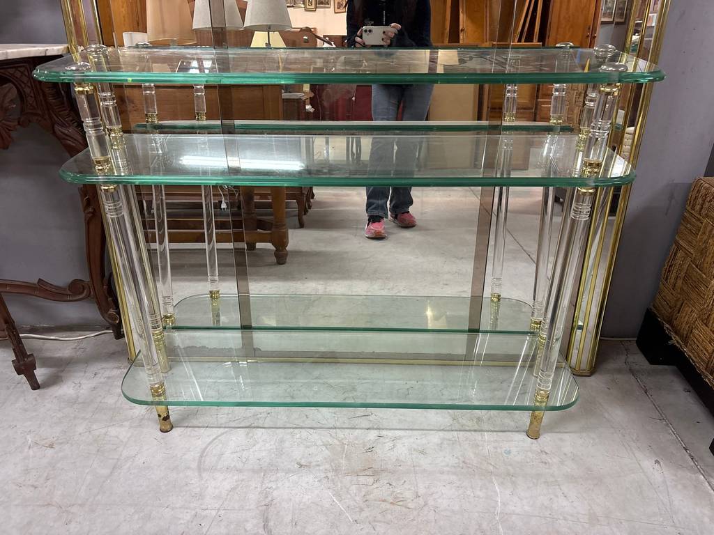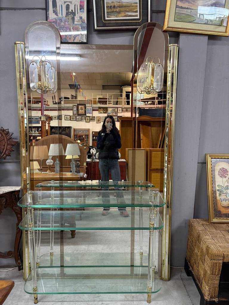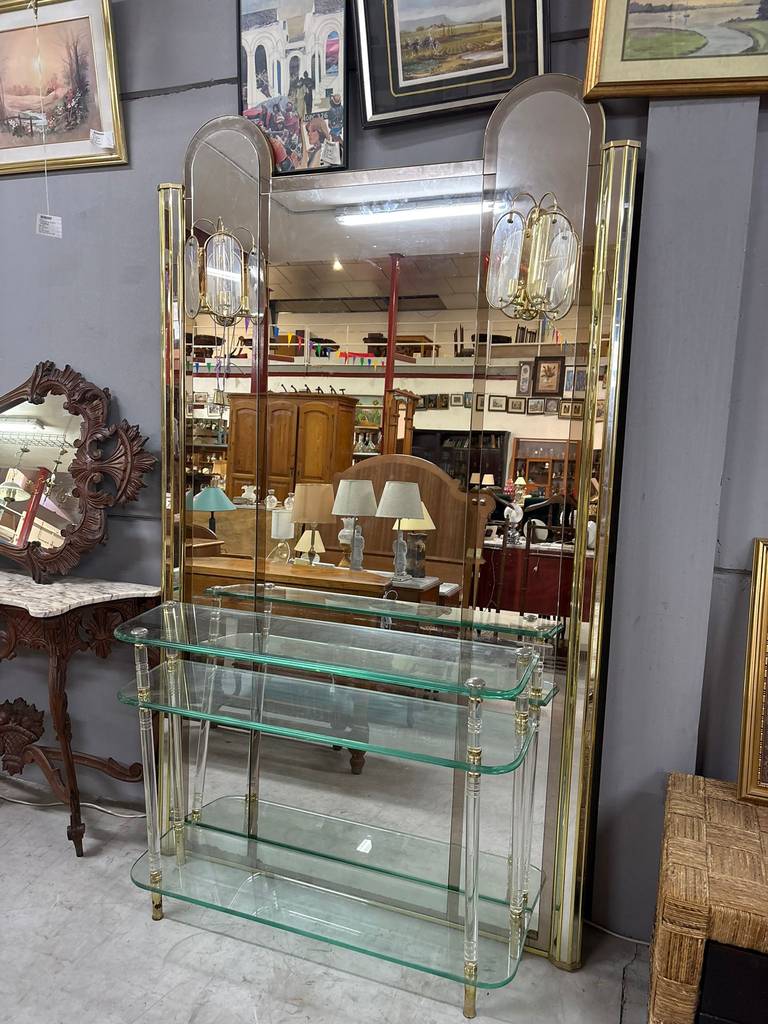 Recibidor de estilo clásico y elegante compuesto por un espejo grande de cuerpo completo y un mueble de cristales transparentes gruesos de buena calidad. El espejo también incorpora en los laterales dos lámparas para dar una buena iluminación. Aprovecha esta oportunidad de hacerte con un recibidor único para tu casa a un precio muy económico. Como podemos observar en las fotografías se encuentra en buenas condiciones.