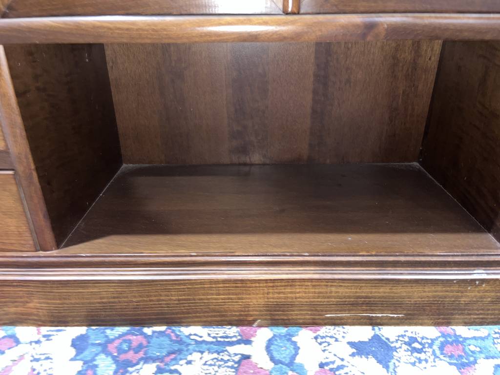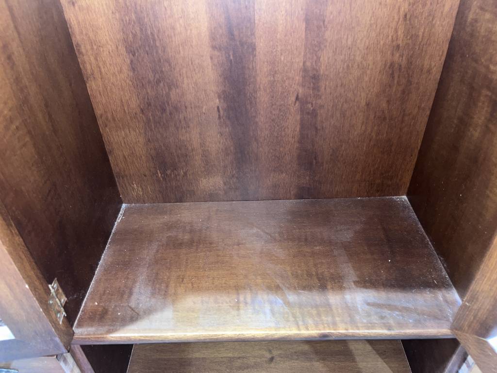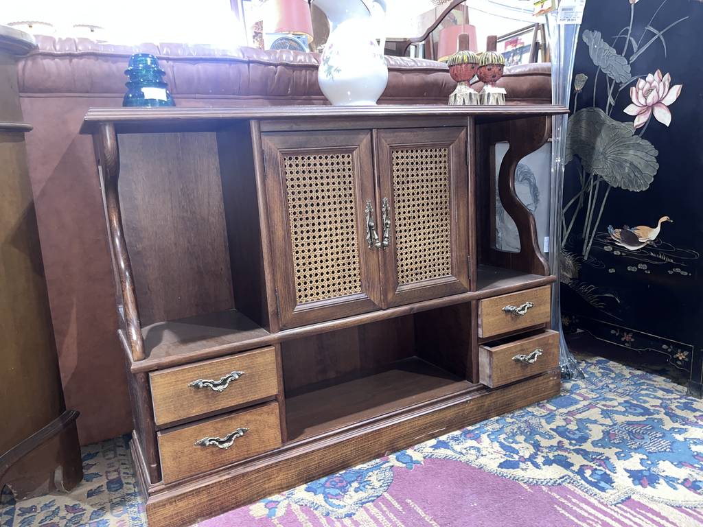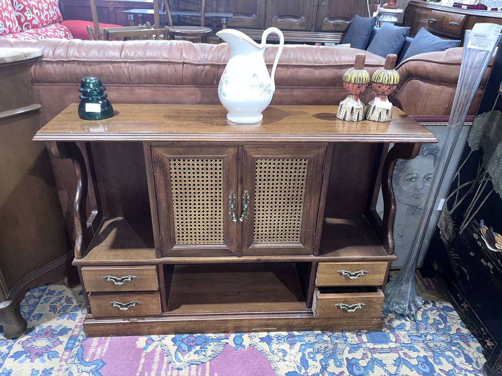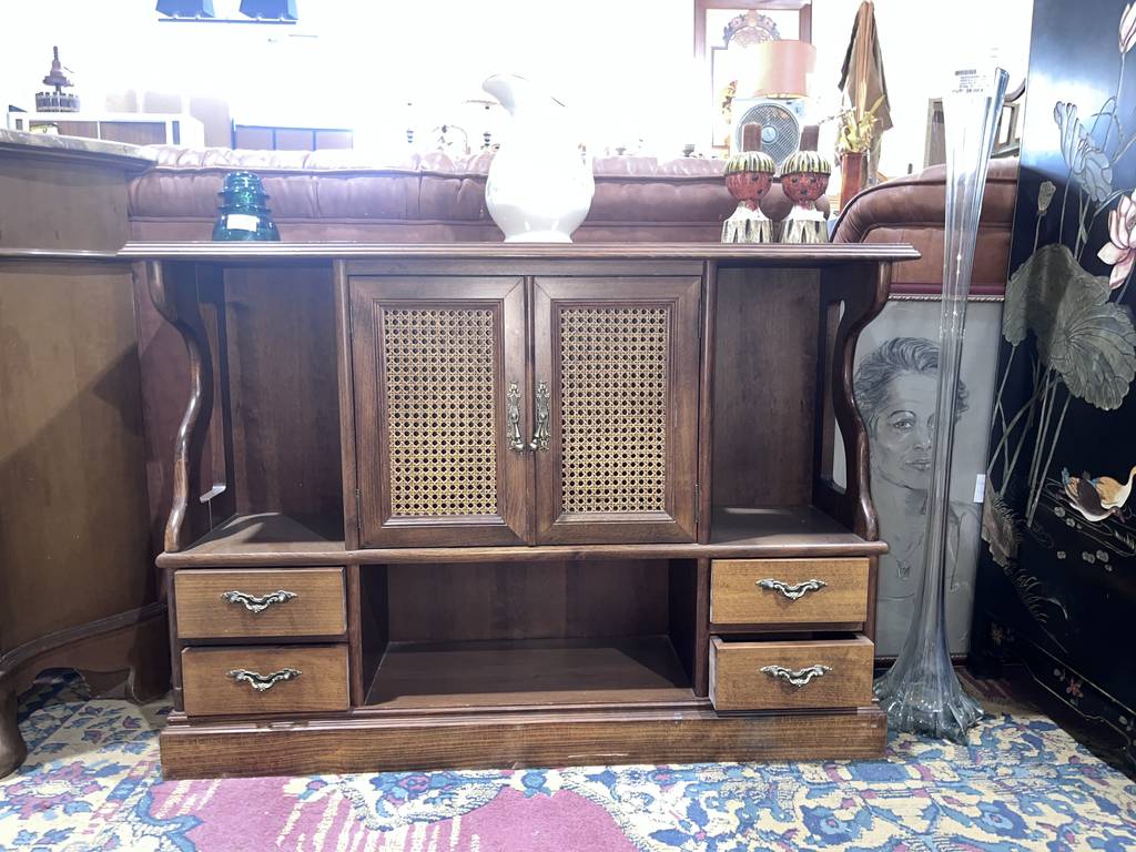 Mueble recibidor de estilo clásico fabricado en madera de buena calidad de color marrón oscuro. Se trata de un mueble recibidor que consta de cuatro pequeños cajones con tiradores metálicos, dos puertas centrales y dos habitáculos para colocar figuras. Es un recibidor perfecto para la entrada de un hogar. Como se puede observar en las fotografías se encuentra en buenas condiciones.
