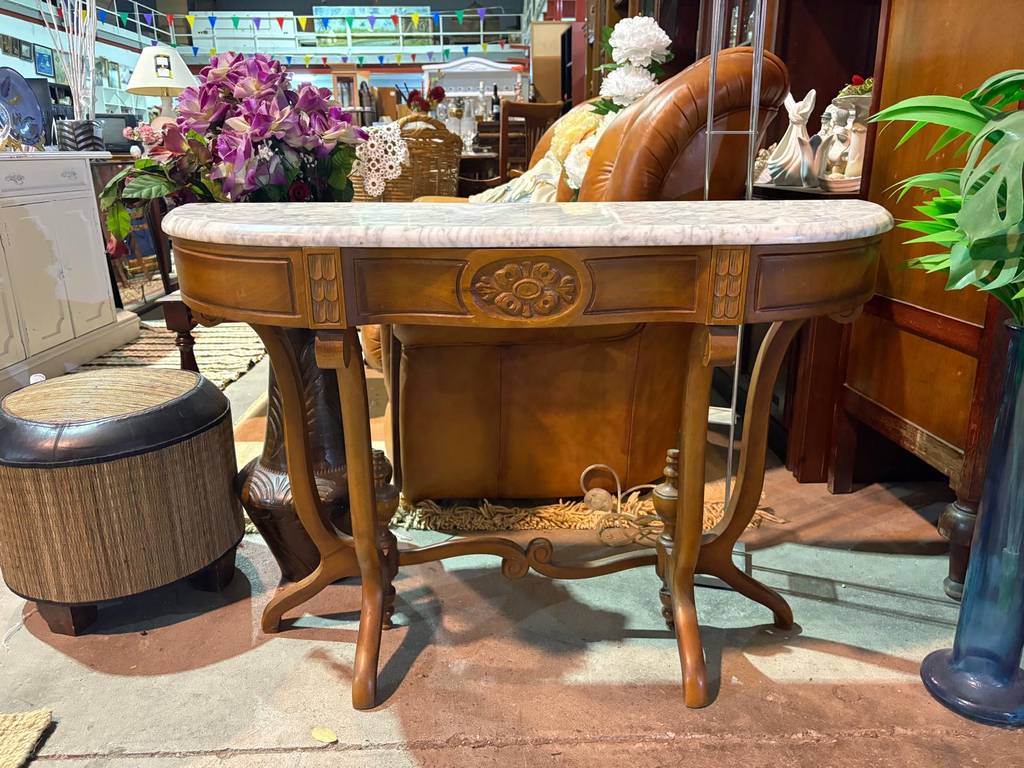 Entradita o recibidor muy bonito y elegante de estilo Luis XVI con una estructura de madera de buena calidad y robusta, así como formas realizadas con detalle y precisión haciéndolo resaltar. También incorpora un mármol superior grueso y duradero. Es ideal para darle un toque elegante a nuestro recibidor. Como podemos observar en las fotografías se encuentra en buenas condiciones.