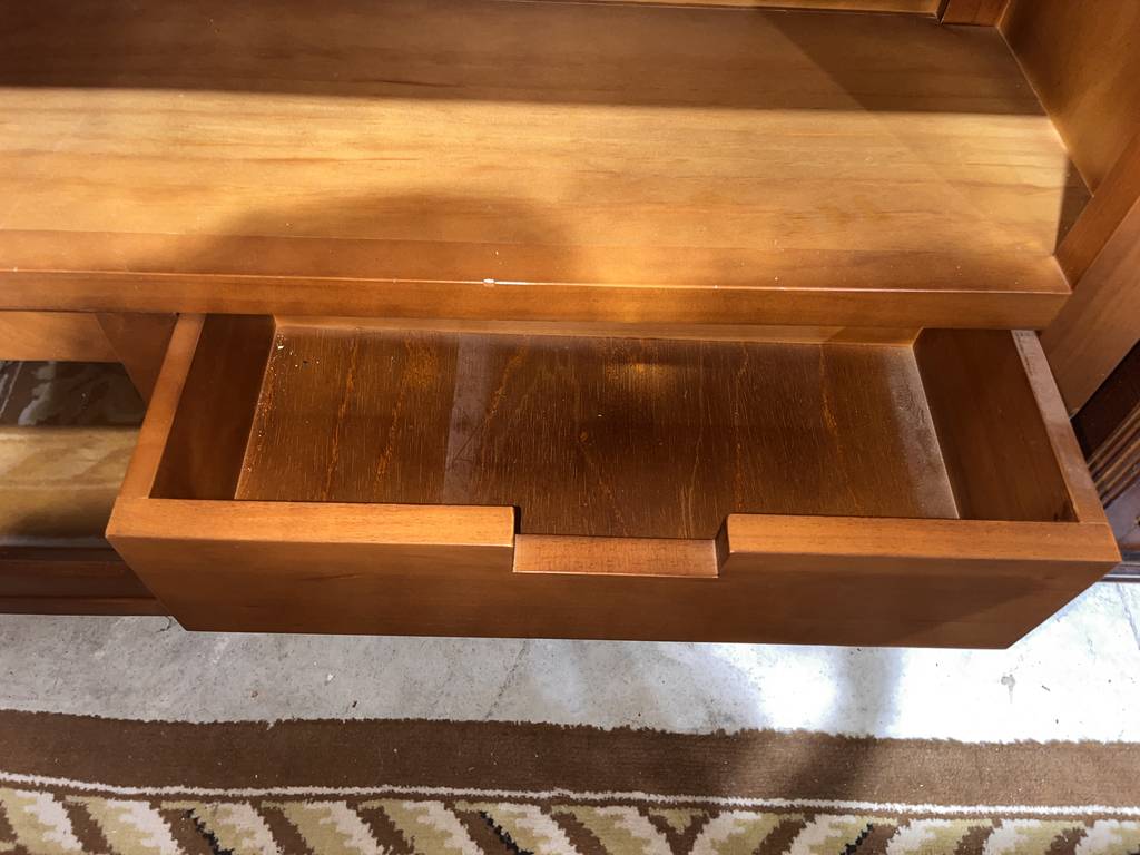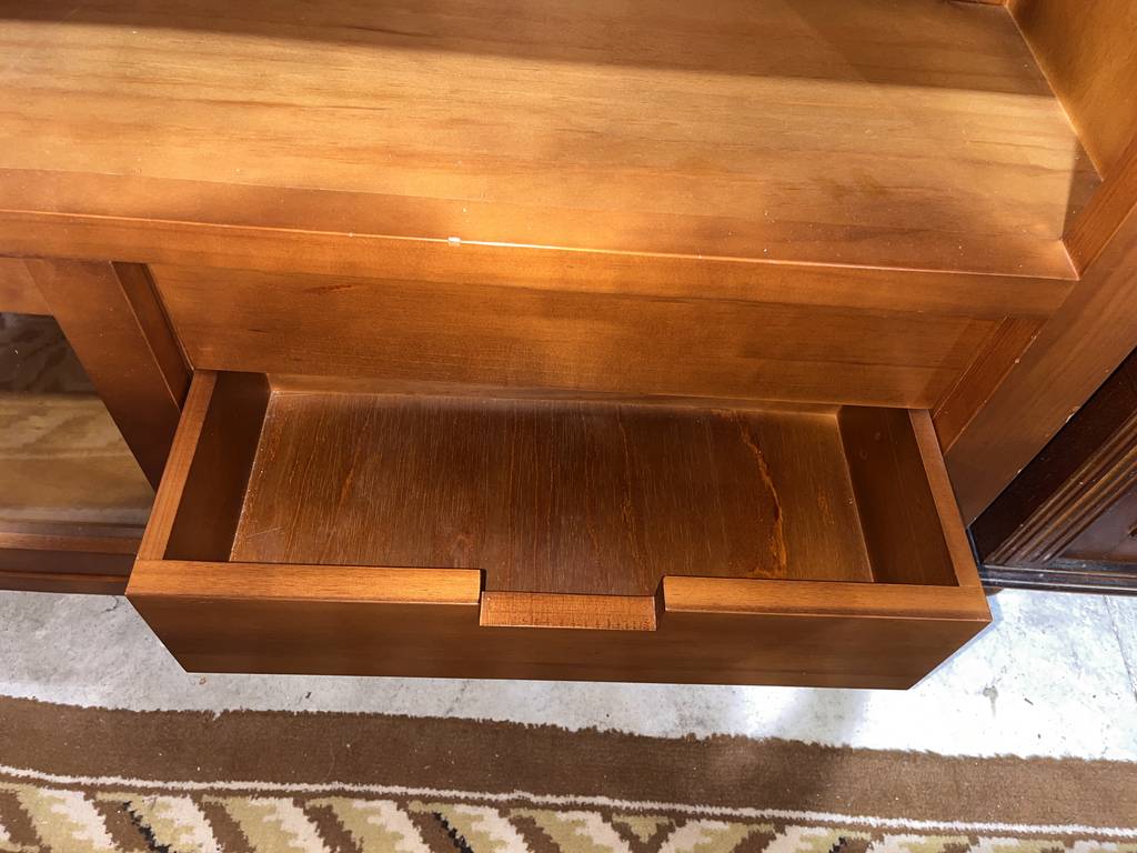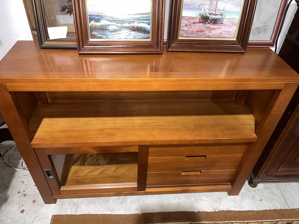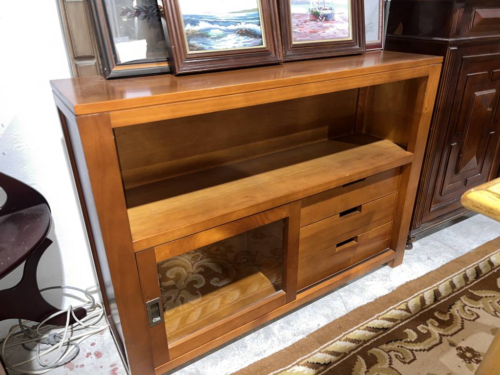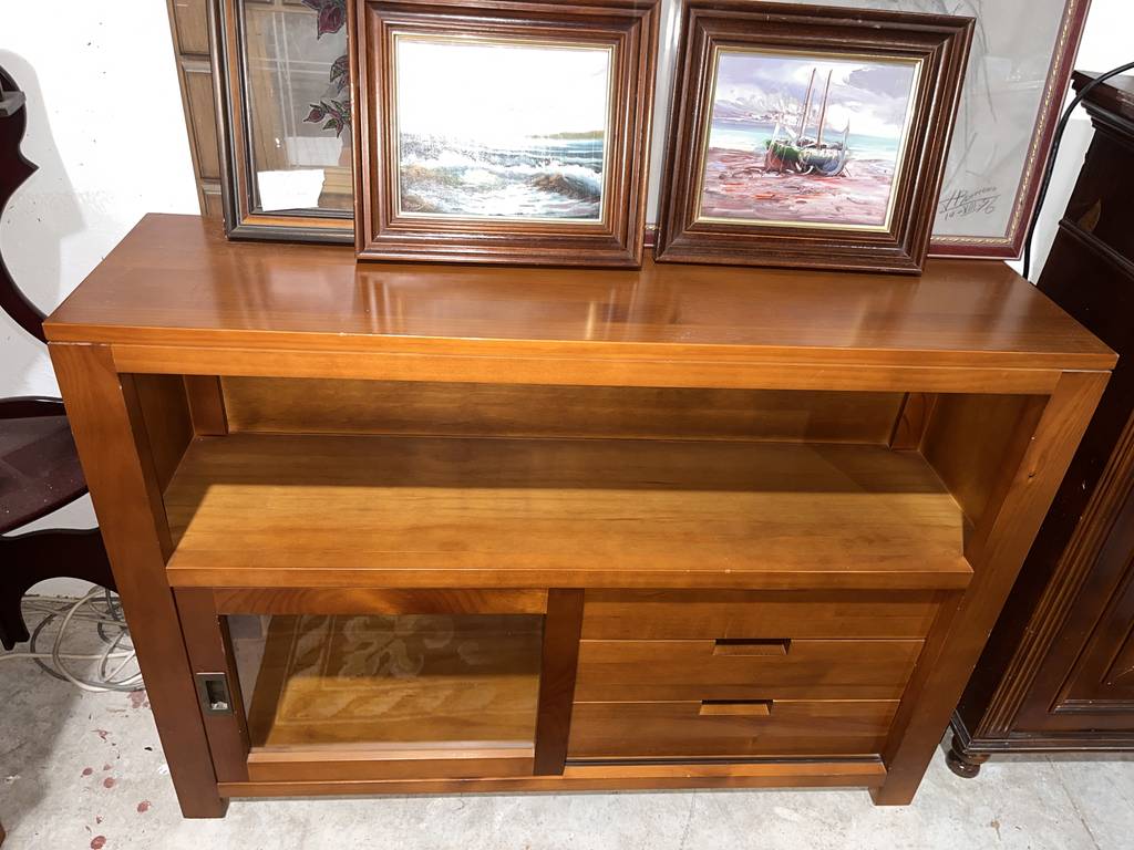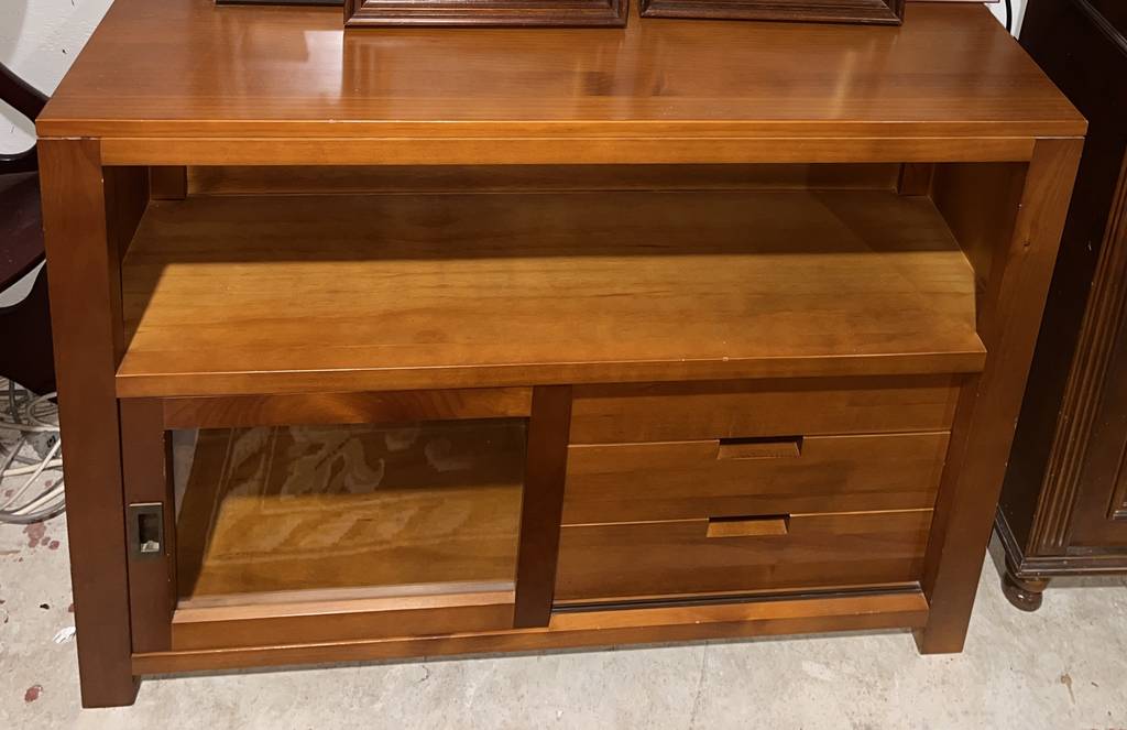 Recibidor de estilo moderno que ha sido fabricado con madera de buena calidad y robusta. Se trata de un portentoso recibidor con una parte frontal compuesta por un habitáculo abierto amplio, tres cajones y una puerta con cristal transparente. Es ideal para darle un toque al recibidor de nuestra casa. Como podemos observar en las fotografías se encuentra en buenas condiciones.