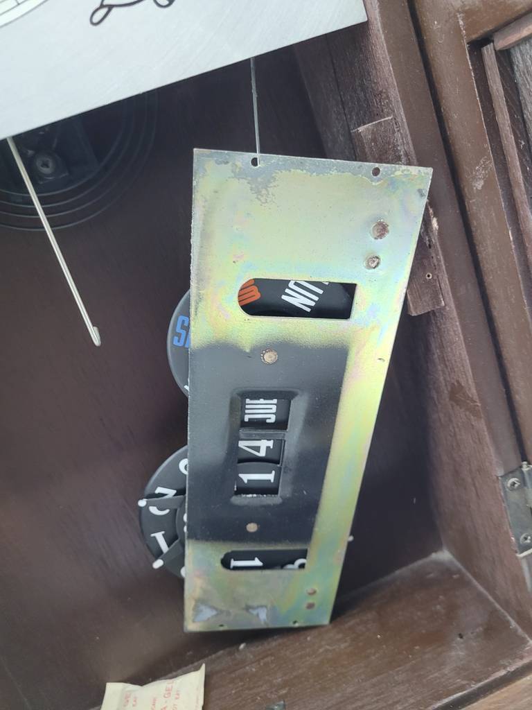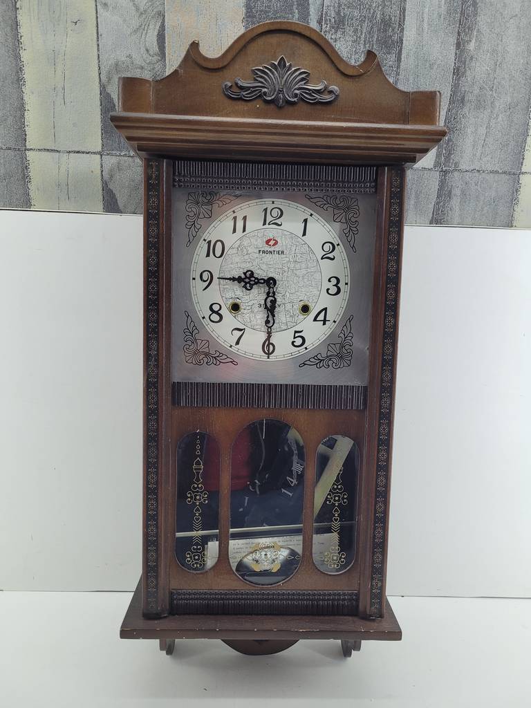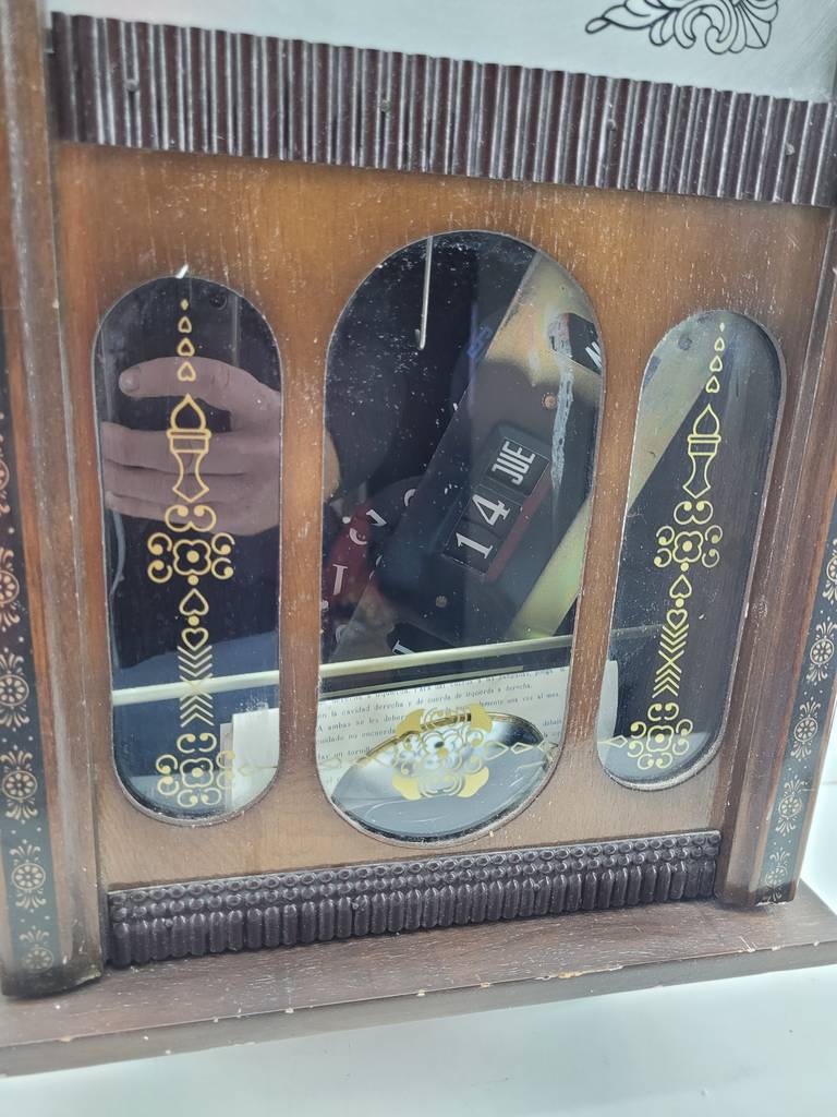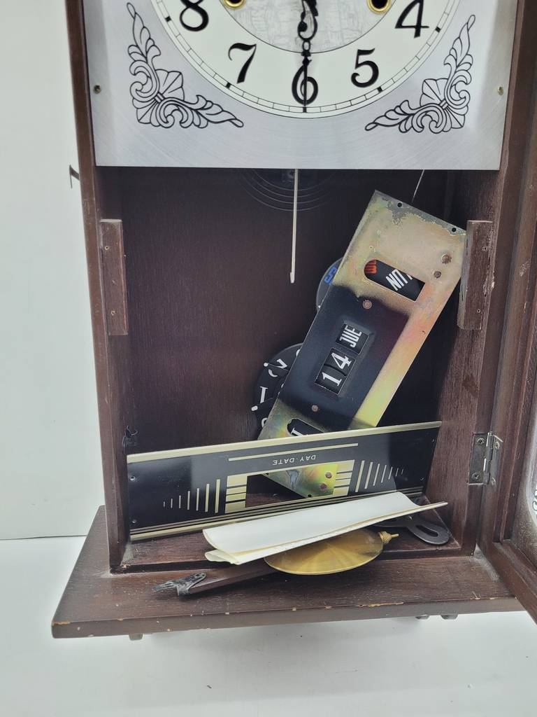 Reloj de pared de cuerda de estilo clásico muy bonito y original con una estructura que ha sido realizada con madera de buena calidad y robusta. Se trata de un elemento decorativo muy original que resaltará colgado en nuestro salón comedor, por ejemplo. Como podemos observar en las fotografías se encuentra en buen estado de conservación aunque no funciona.