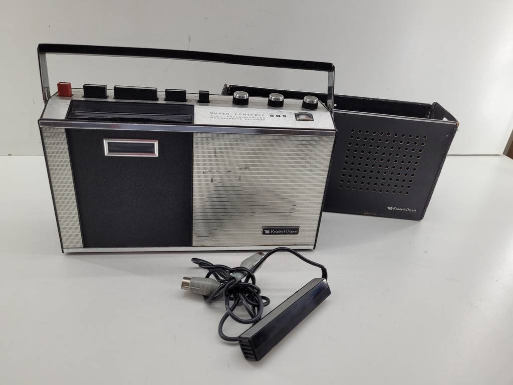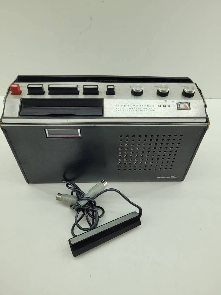 Reproductor de cassettes de la marca Readers modelo Digest 90. Es un reproductor de cassettes de diseño vintage que también incorpora una carcasa protectora. Es ideal para personas que quieran repararlo puesto que no funciona, aunque como podemos observar en las fotografías la carcasa original se encuentra en buen estado de conservación.