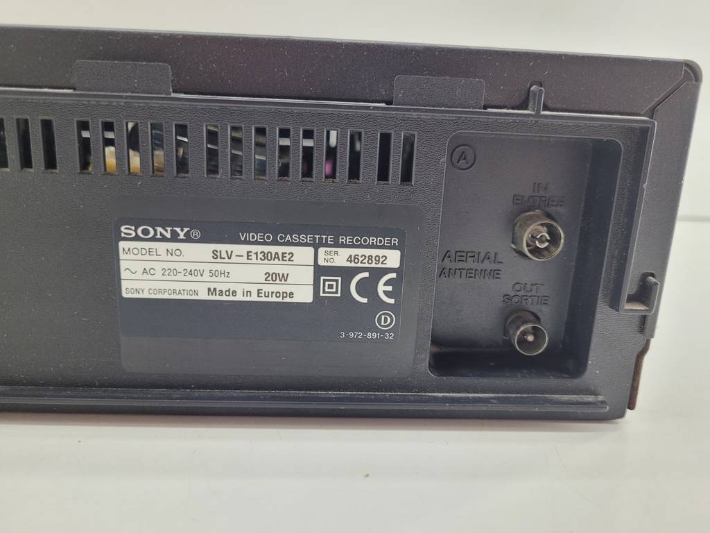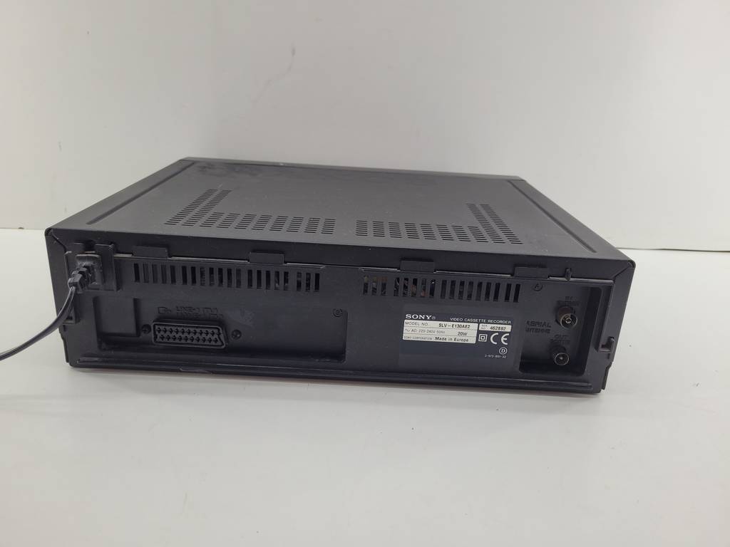 Reproductor de VHS de estilo clásico de la reconocida marca de electrodomésticos Sony modelo SLV-SE10 en color negro. Se trata de un reproductor de vhs que resulta ideal para colocarlo encima de un mueble en un salón comedor para ver películas o series clásicas sentado en el sofá. Como se puede observar en las fotografías se encuentra en buenas condiciones