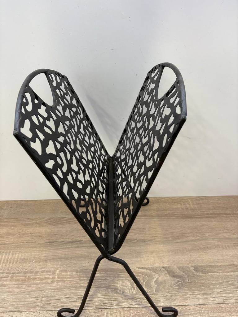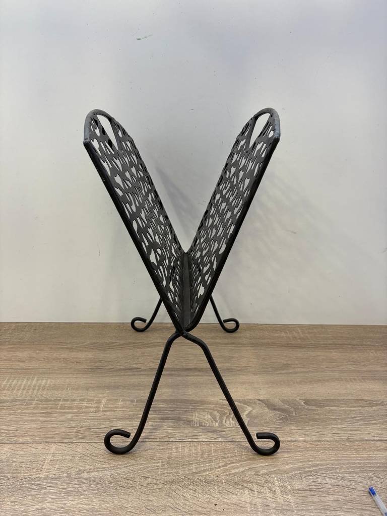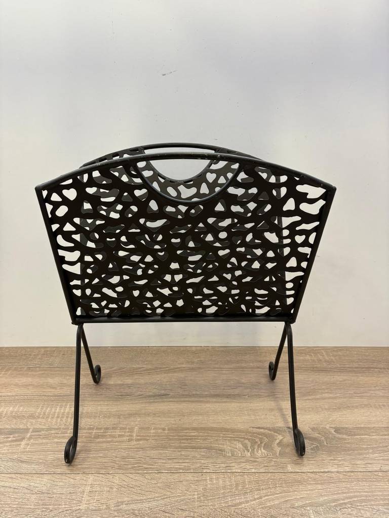 Revistero fabricado en forja de buena calidad duradera y resistente de color negro. Se trata de un revistero que cuenta con cuatro patas robustas y tiene una forma amplia en la que caben muchas revistas. Es un revistero perfecto para colocarlo al lado de un sofá en un salón comedor. Como se puede observar en las fotografías se encuentra en buenas condiciones.