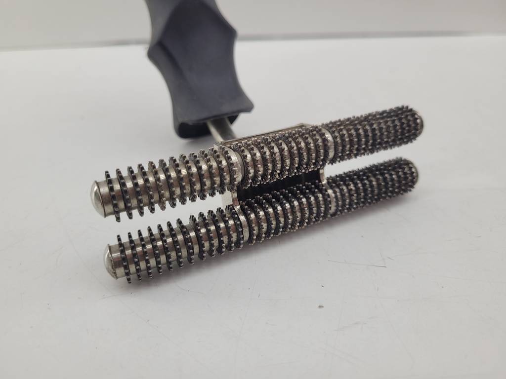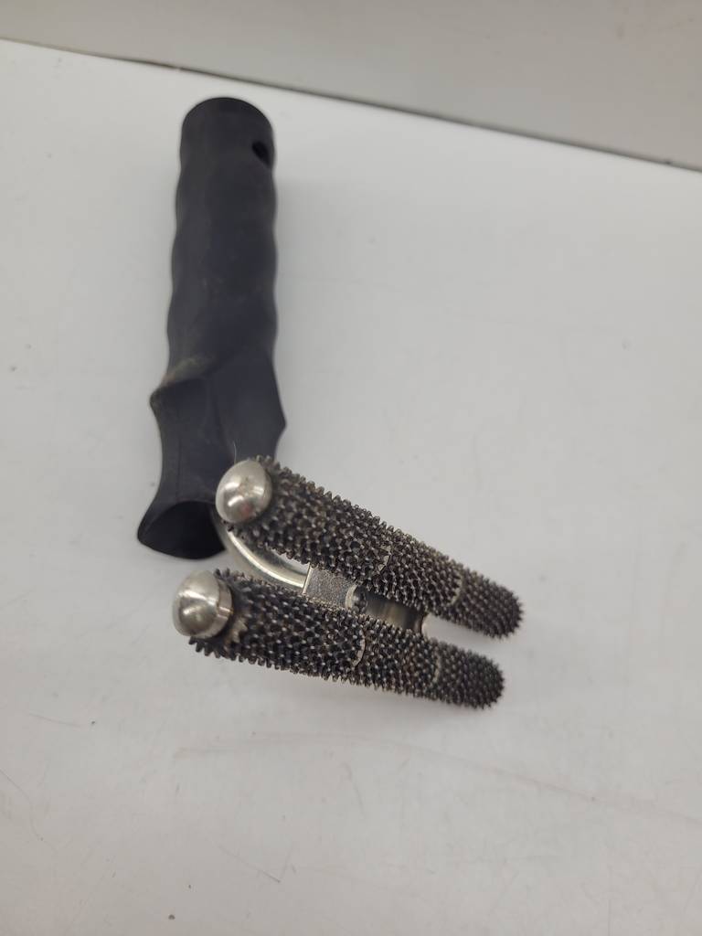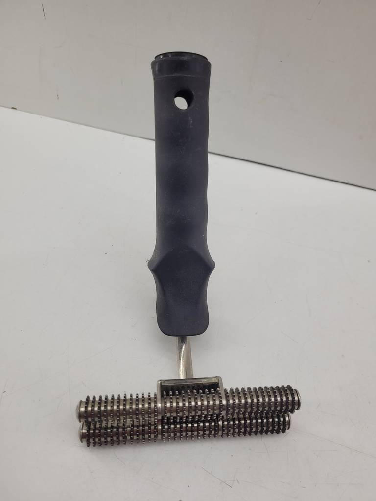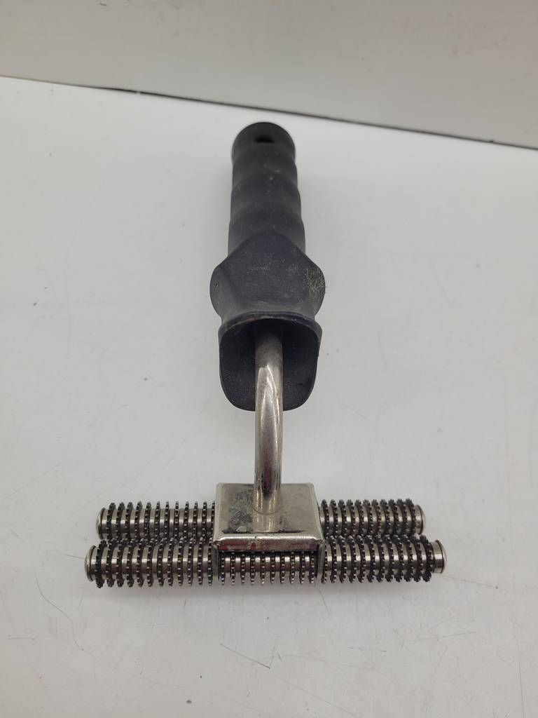 Rodillo para costura de alfombras de buena calidad de color plateado y negro. Se trata de un rodillo para costura de alfombras que se utiliza moviéndolo hacia atrás y hacia adelante para mezclarse con las costuras de la alfombra sin alterar la posición del respaldo. Es un rodillo ideal para tenerlo en el hogar si tienes alfombras. Como se puede observar en las fotografías se encuentra en buenas condiciones.
