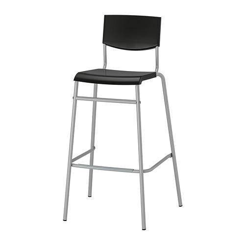 Silla alta de bar cuya estructura está fabricada en metal de color plateado y tiene un asiento y un respaldo de plástico grueso de color negro. Se trata de una silla alta de bar que tiene una altura de sesenta y tres centímetros y resulta ideal para ponerla en una cocina o en un negocio como un bar. Como se puede observar en las fotografías se encuentra en buenas condiciones.