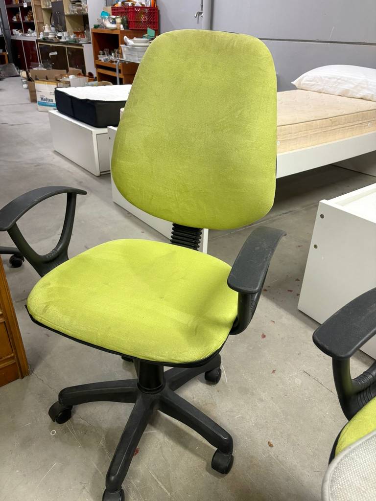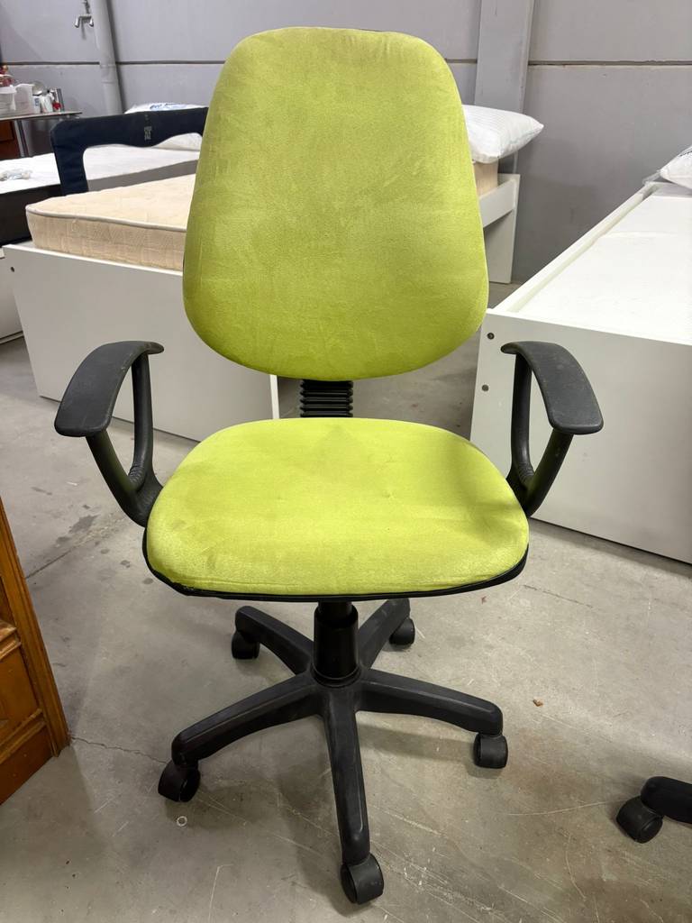 Silla de escritorio de color verde fabricada en plástico duro y resistente. Se trata de una silla de escritorio que cuenta con cinco patas con ruedas para poder moverla con mayor facilidad por las estancias. Es una silla ideal para colocarla en un estudio junto a un escritorio para estudiar o trabajar. Como se puede observar en las fotografías se encuentra en buenas condiciones.