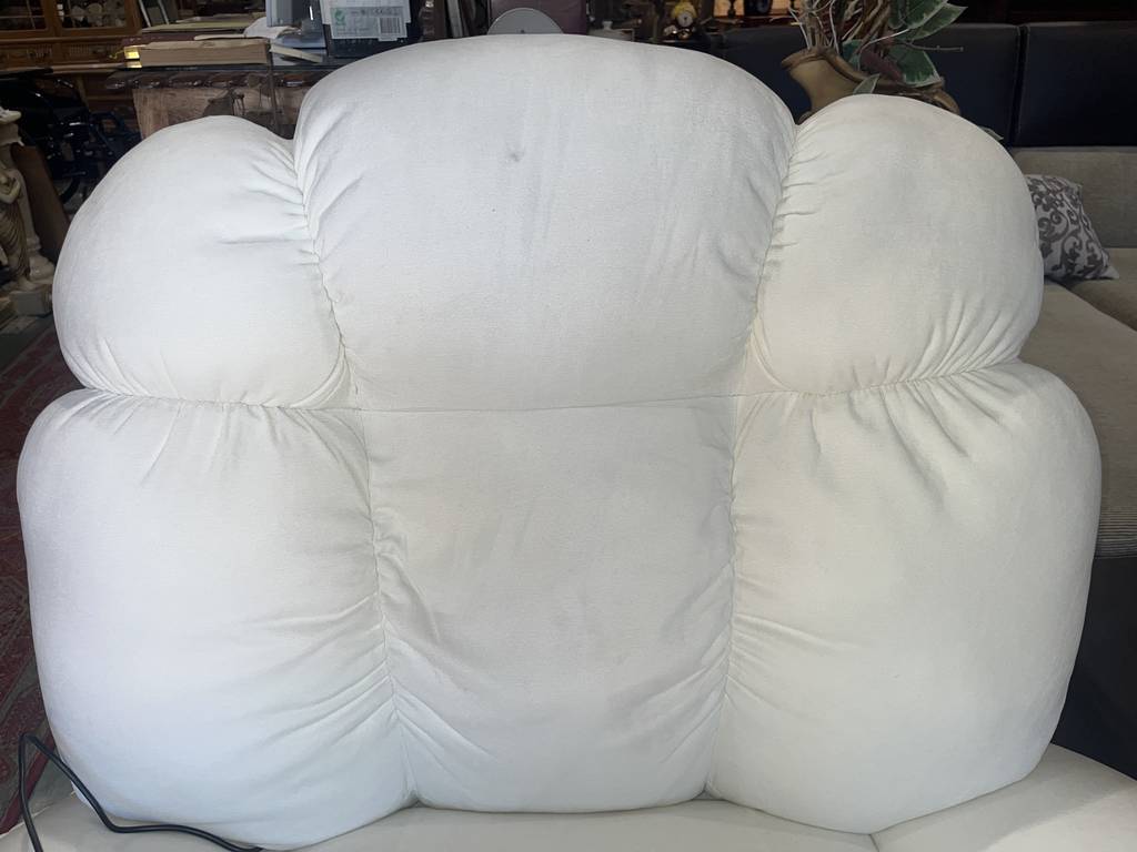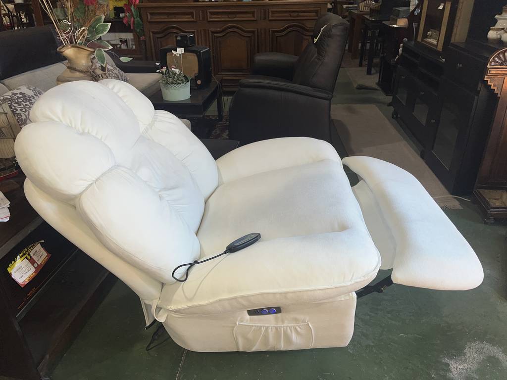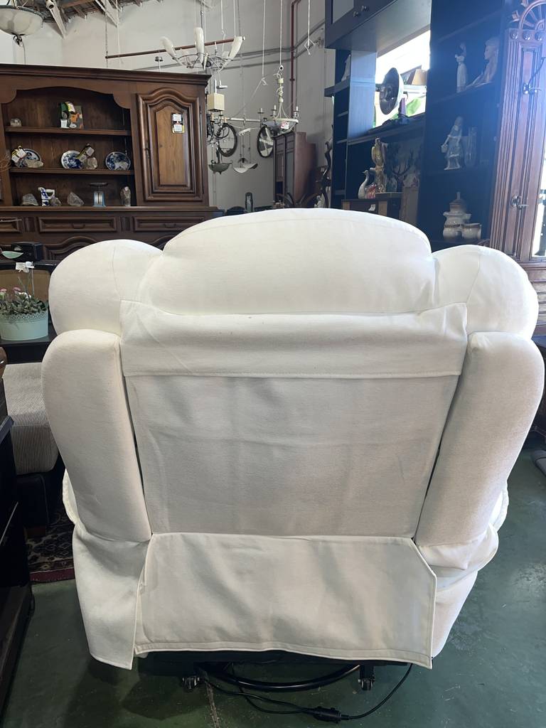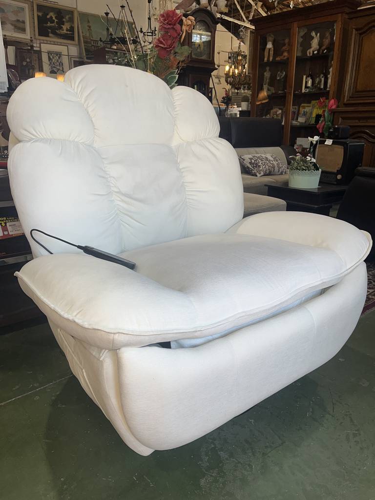 Sillón balancín en color blanco con masajeador incorporado. Se trata de un sillón muy cómodo con un asiento y respaldo cómodo y muy acolchado. Incorpora un mando lateral para masajearnos con diferentes configuraciones y potencias. También podemos reclinarlo de forma completa. Como podemos observar en las fotografías se encuentra en buenas condiciones. Aprovecha esta oportunidad de llevarte un sofá relax a un precio muy económico.
