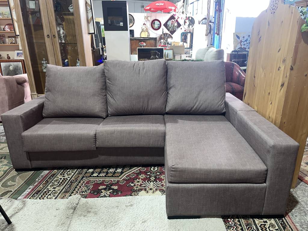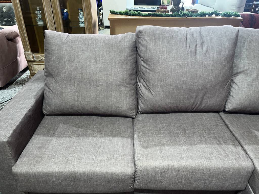 Sofá chaiselongue de gran tamaño fabricado con materiales de buena calidad de color gris. Se trata de un sofá chaiselongue que tiene dos plazas anchas más la parte del chaiselongue en la que te puedes estirar completamente. Es un sofá ideal para colocarlo en un salón comedor amplio. Como se puede observar en las fotografías se encuentra en buenas condiciones.