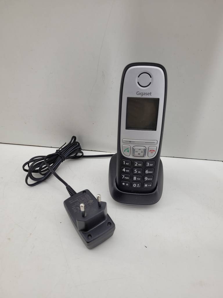 Teléfono inalámbrico de la marca Gigaset modelo A415. Incorpora una base para cargar el teléfono o tenerlo colocado habitualmente. Se trata de un teléfono inalámbrico muy cómodo para tenerlo a mano en cualquier lugar de nuestra casa. Como podemos observar en las fotografías se encuentra en buenas condiciones. Aprovecha esta oportunidad de llevarte un buen teléfono a un precio muy económico.