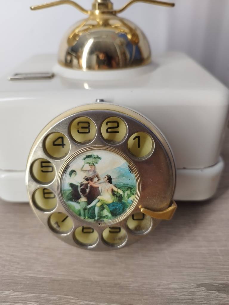 Teléfono de estilo vintage muy coqueto y bonito que es ideal para coleccionistas de elementos de época. Se encuentra completo con su botonera original, así como de la parte superior completa. Es ideal para exponer en nuestro estudio o salón comedor. Como podemos observar en las fotografías se encuentra en buen estado de conservación.
