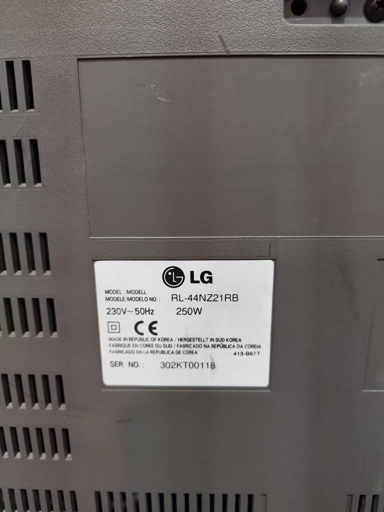 Televisor de la famosa marca de televisores LG modelo RL-44NZ21RB. Se trata de un televisor vintage de grandes dimensiones compuesto en una sola pieza con todo incluido para ser utilizado diariamente. Tiene botonera en la parte frontal y en la trasera múltiples conexiones. También incluye el mando. Es ideal para colocar en un salón comedor. Como podemos observar en las fotografías se encuentra en buenas condiciones.